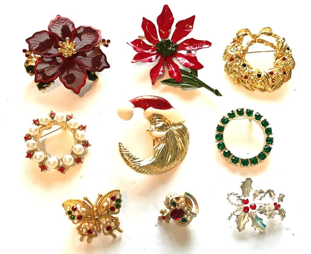 SANTA CLAUS MOON POINTSETTA MISTLETOE GREEN RED WREATH BUTTERFLY CROWN SEE MARKINGS!