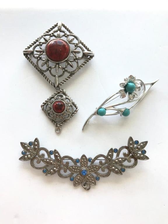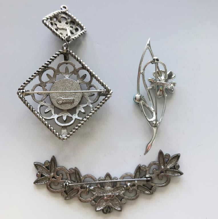 2 SARAH COVENTRY, 1 JJ — FLOWERS, BLUE RHINESTONES, FAUX TURQUOISE