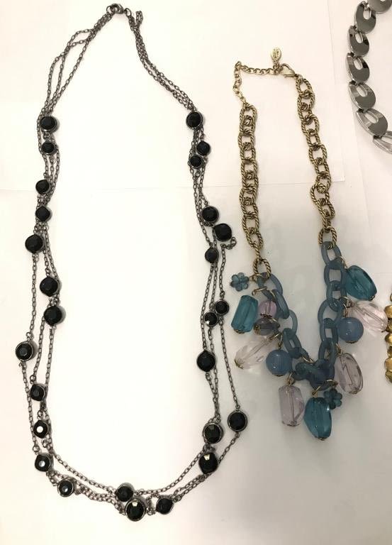 BLACK BEAD, BLUE AND CLEAR STONES, BIB STLYE, STATEMENT NECKLACE, RHINESTONE,