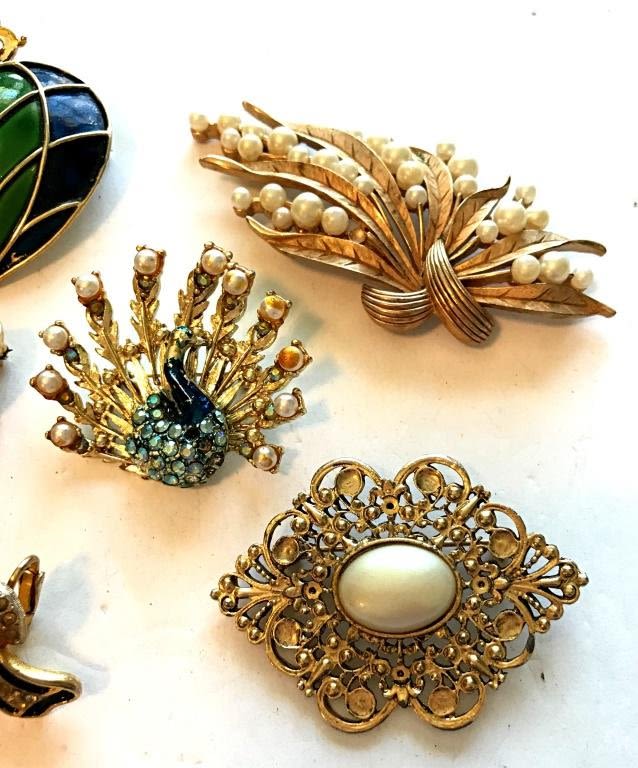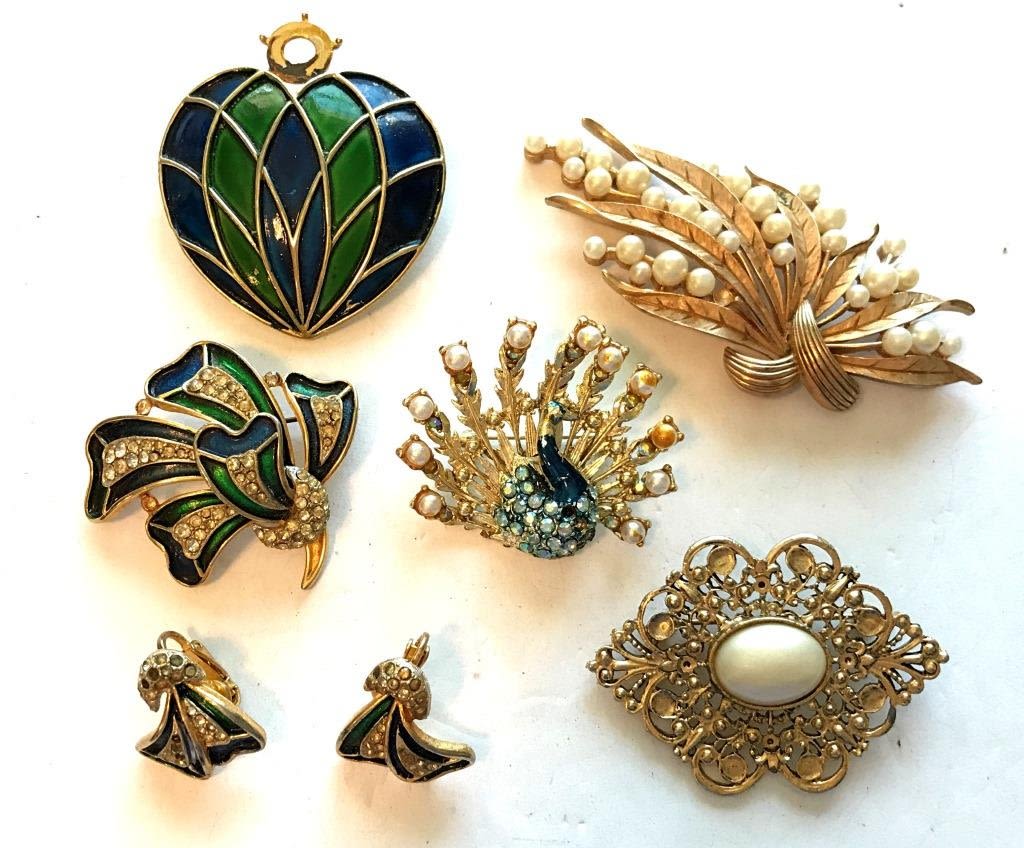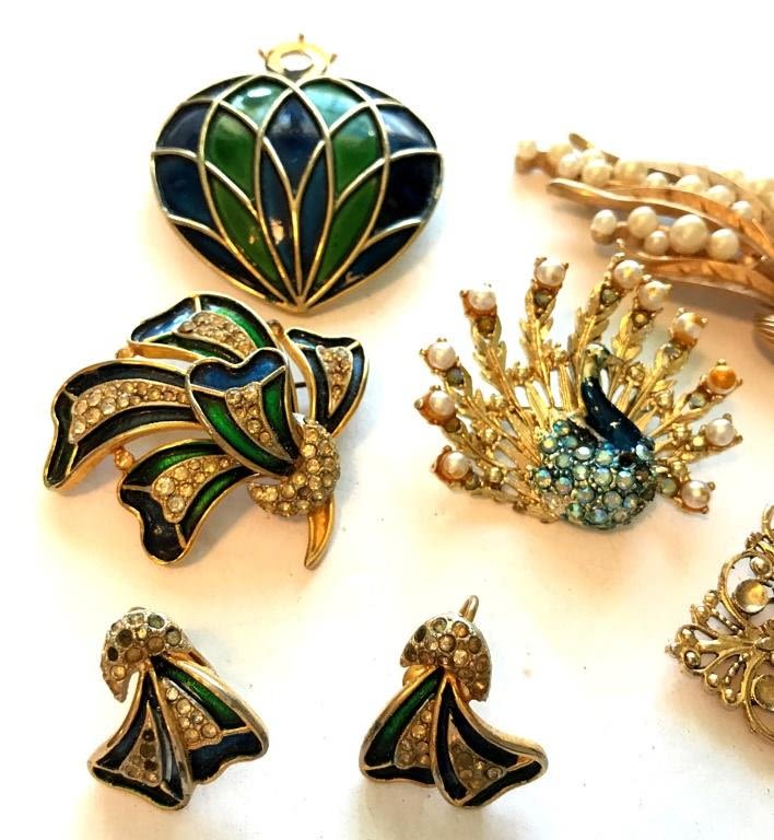 ENAMEL, PEARL RHINESTONES, PEACOCK VINTAGE!!