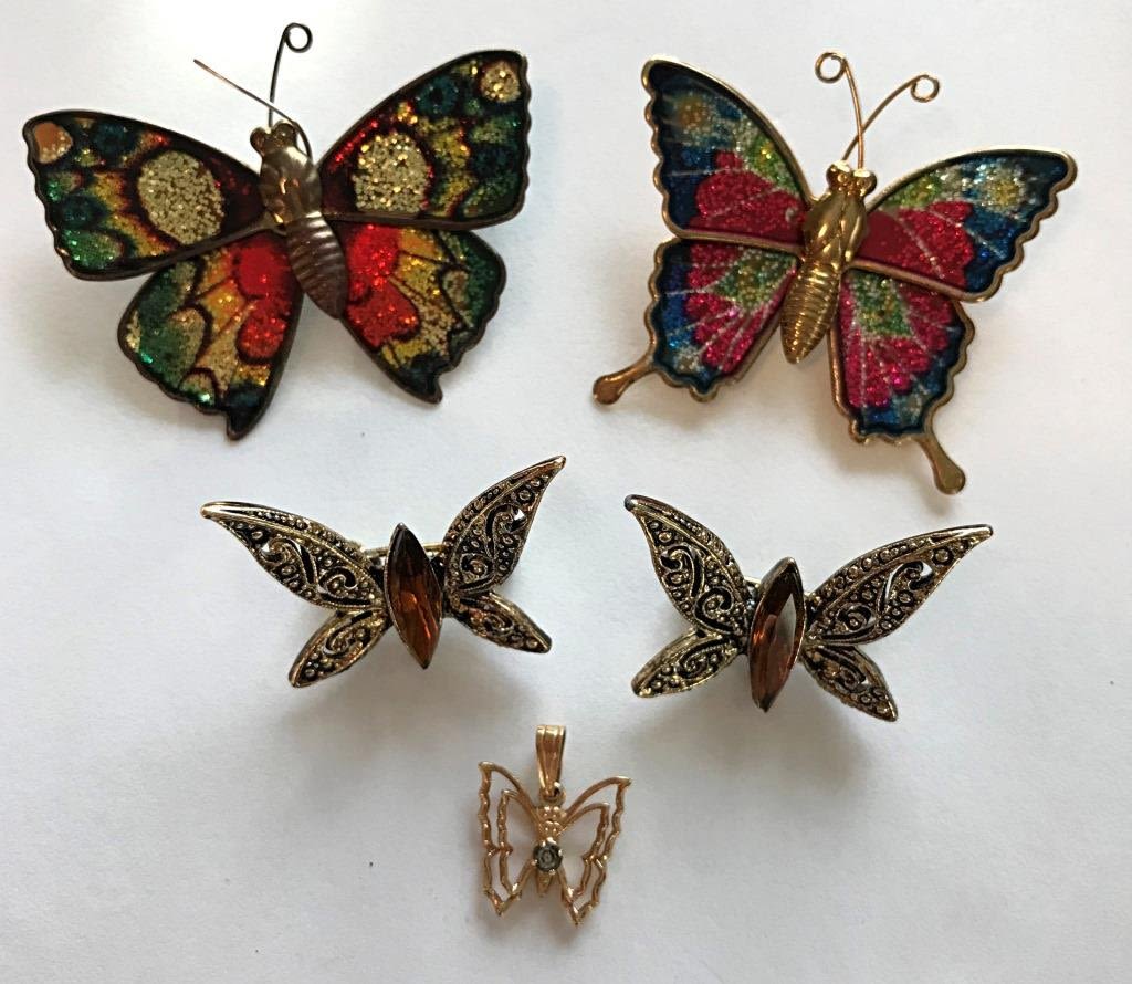 4 BROOCHES ENAMEL AND ONE PENDANT