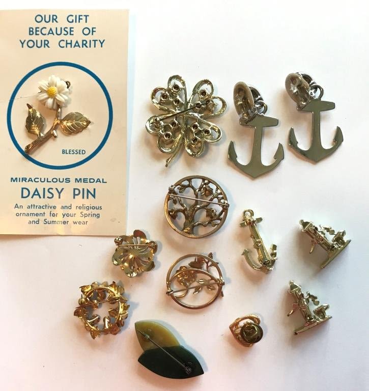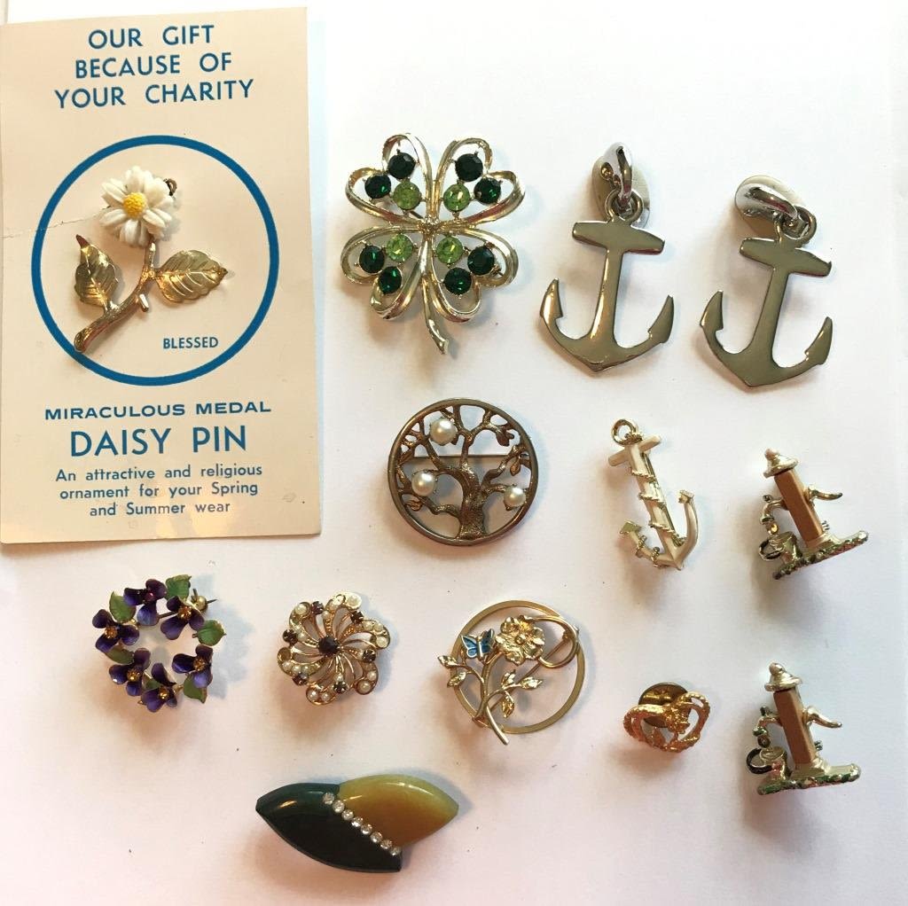 WELL (MISSING RHINESTONE/S), ANCHOR, FAUX PEARL, RHINESTONE, FLOWERS, HEART, BROWN, DAISY, FOUR LEAF CLOVER