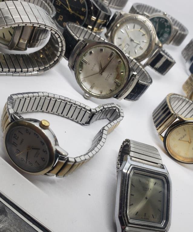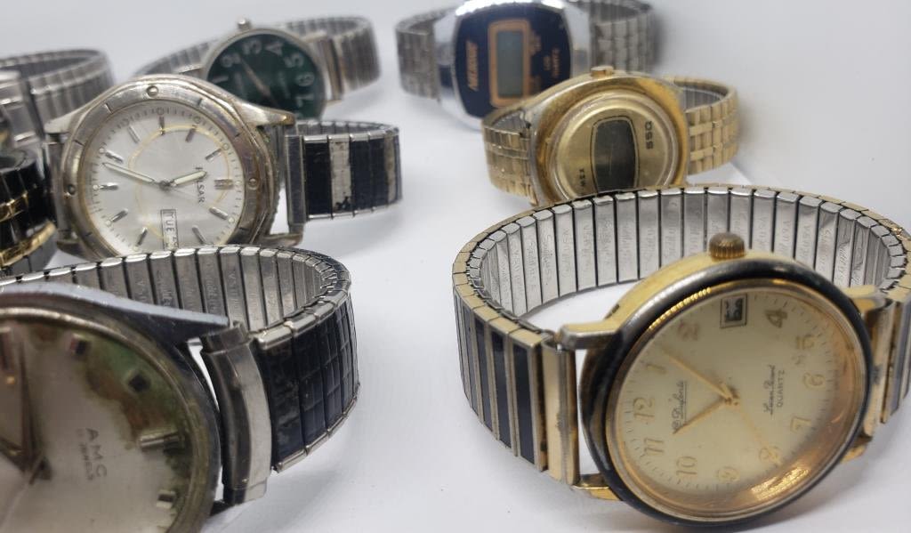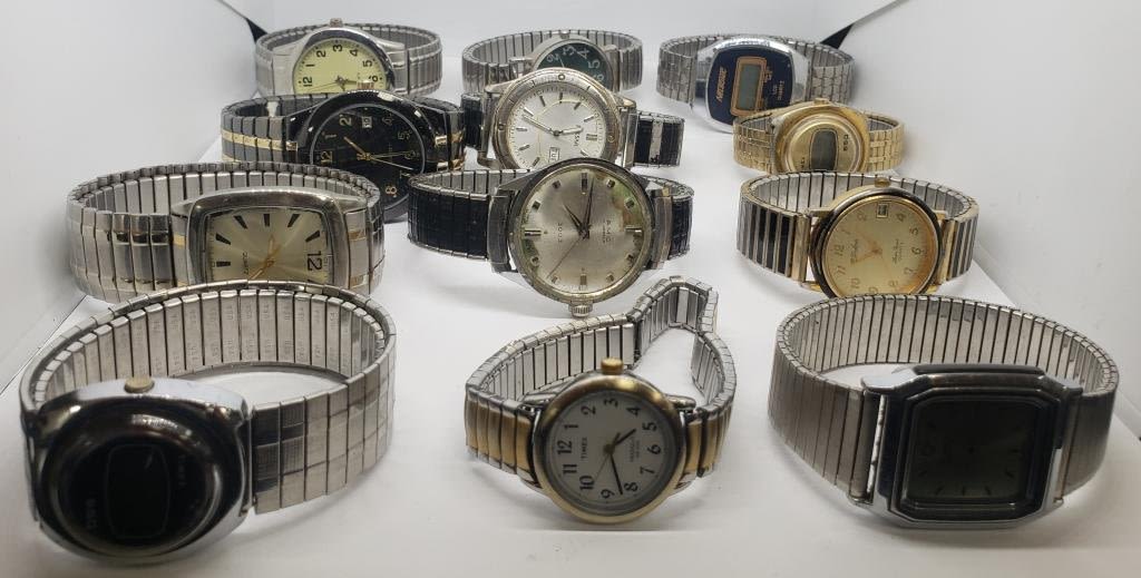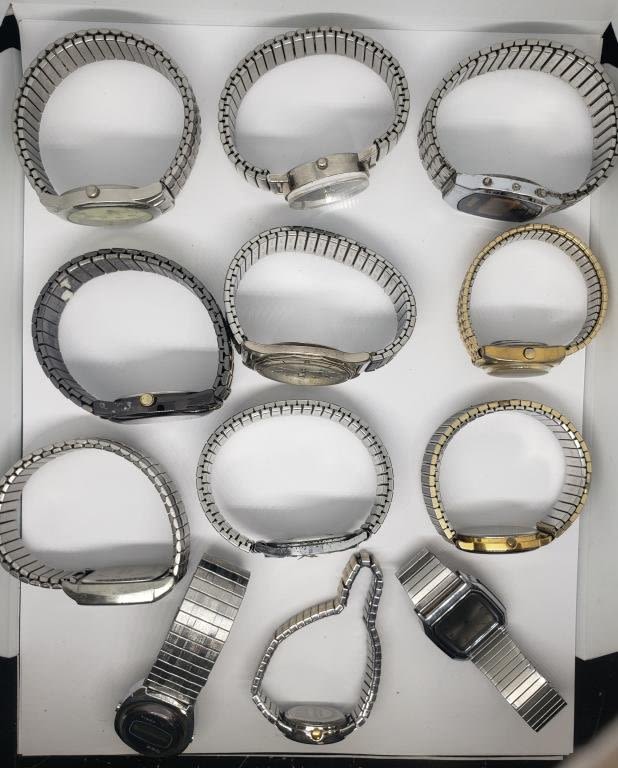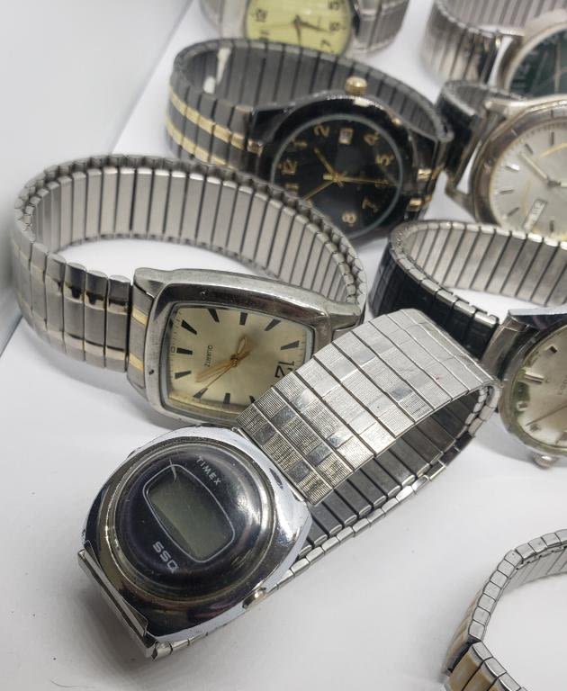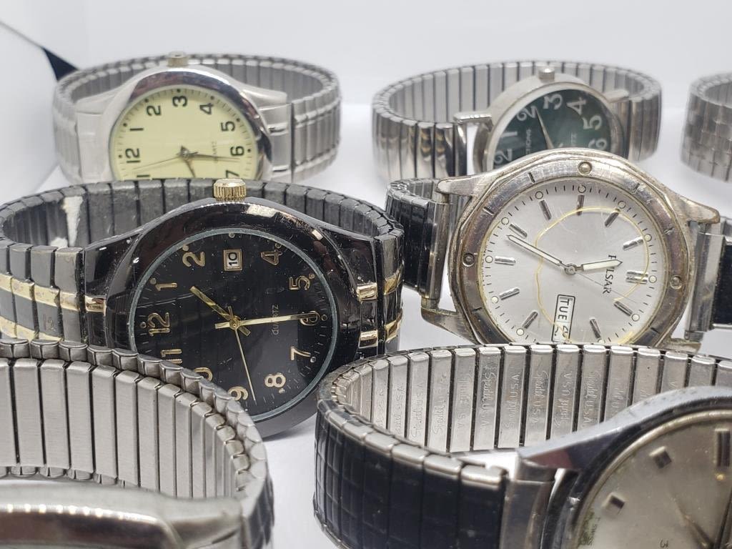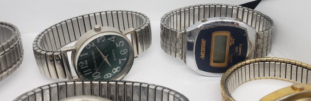 INDIGLO WR 30M (1)TIMEX SSQ (1)PULSAR DAY DATE (1)NELSONIC LCD QUARTZ (1)AMC 17 JEWELS (1)TIMEX SSQ (3)QUARTZ-ALL UNTESTED-SOME MAY BE USED FOR PARTS/REPAIR