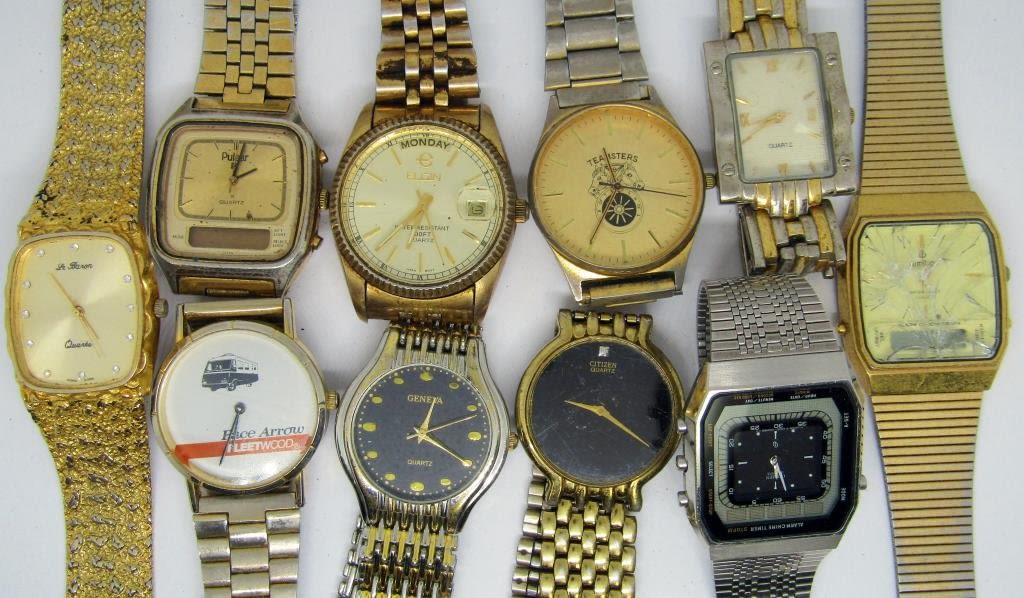 ELGIN CALENDAR-GENEVA-PULSAR-CITIZEN-ARMITRON (CRACKED CRYSTAL)-ALL WATCHES HAVE BEEN UNTESTED