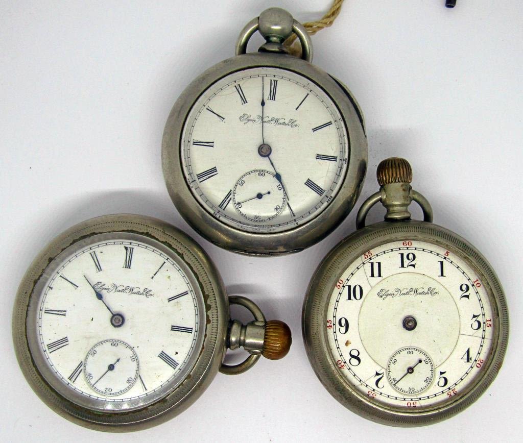 GRADE 97, 18S, 7J, PRODUCTION YEAR (EST) 1890; GRADE 142, 18S, 15J, PRODUCTION YEAR (EST) 1895; GRADE 77, 18S, 17J, PRODUCTION YEAR (EST) 1893; UNTESTED!