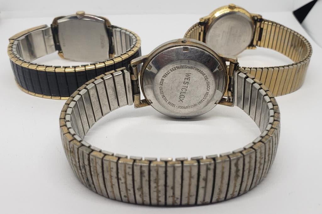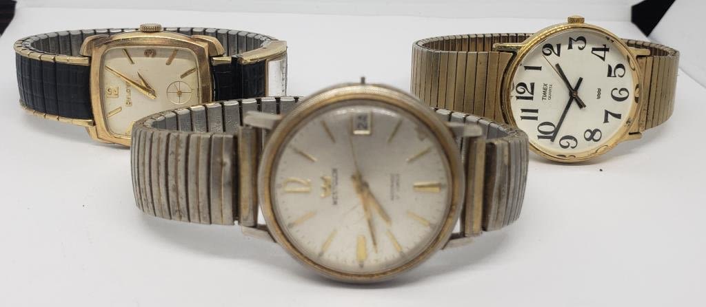 AUTOMATIC 17 JEWELS (1)TIMEX QUARTZ (1)BULOVA 10K RGP BEZEL #H163002-ALL WATCHED UNTESTED-FOR PARTS/REPAIR