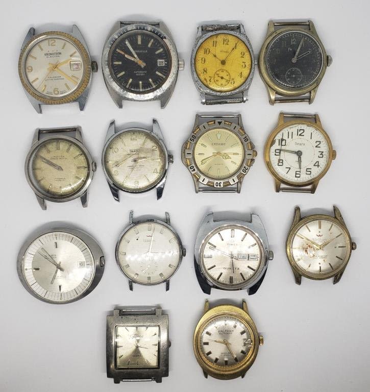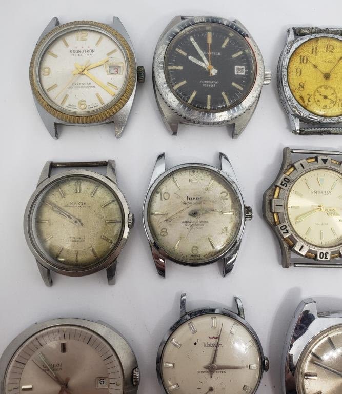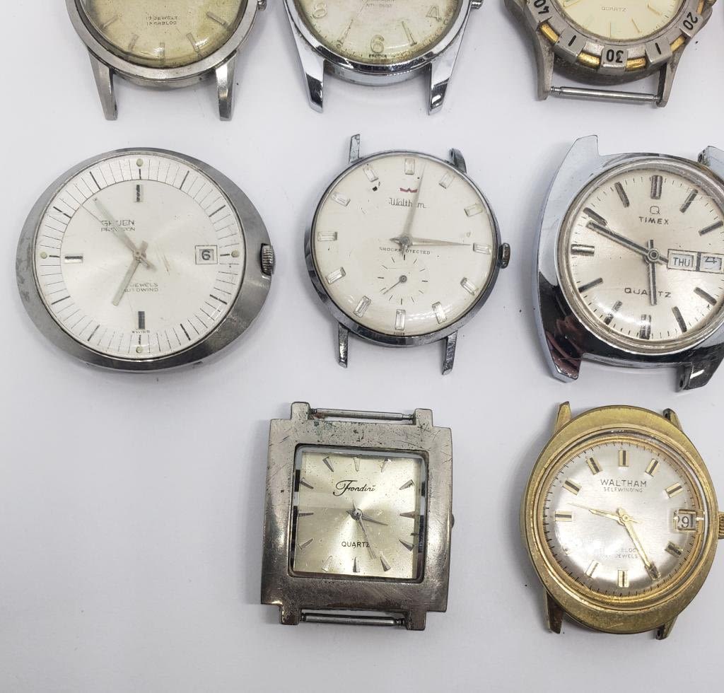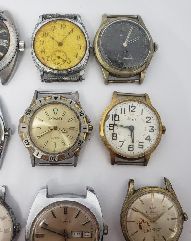 (1)INCIVTA 17 JEWELS (1)CARVELLE AUTOMATIC (RUNNING) (1)WALTHAM 17 JEWELS SELF WINDING (1)EMBASSY QUARTZ (1)KRONOTRON ELECTRA CALENDAR (1)FONDIRI QUARTZ (1)WALTHAM SELF WINDING 17 JEWELS (1)TIMEX DUAL DAY (1)SEARS
