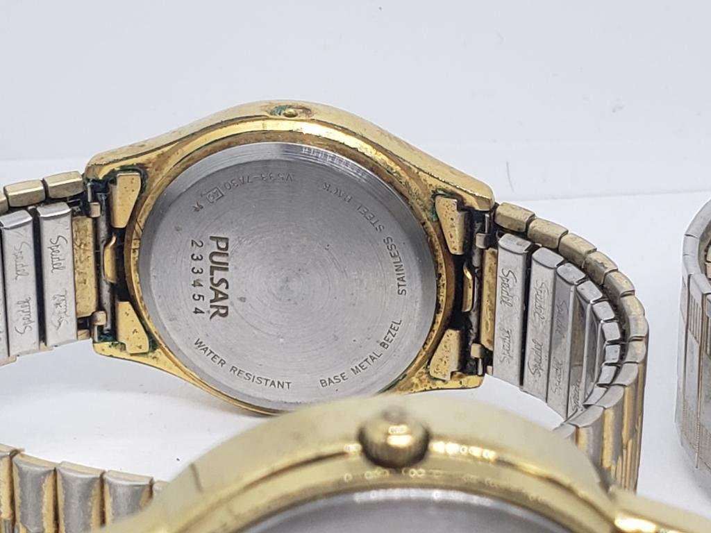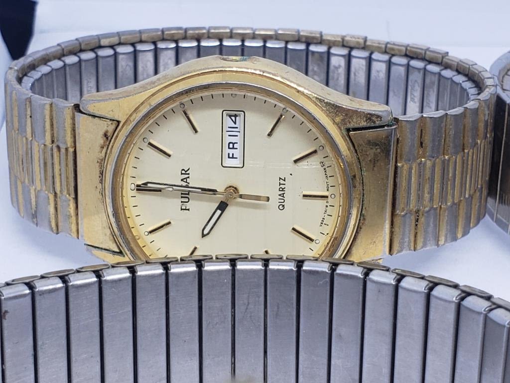 (1)TIMEX QUARTZ DAY DATE (1)TIMEX INDIGLO QUARTZ DAY DATE (1)TIMEX QUARTZ (1)TIMEX INDIGLO WR 30M DAY DATE (1)TIMEX SELF WINDING (1)TIMEX AUTOMATIC DAY DATE (1)TIMEX ELECTRIC (1)PULSAR DAY DATE (1)ELGIN WR 100FT