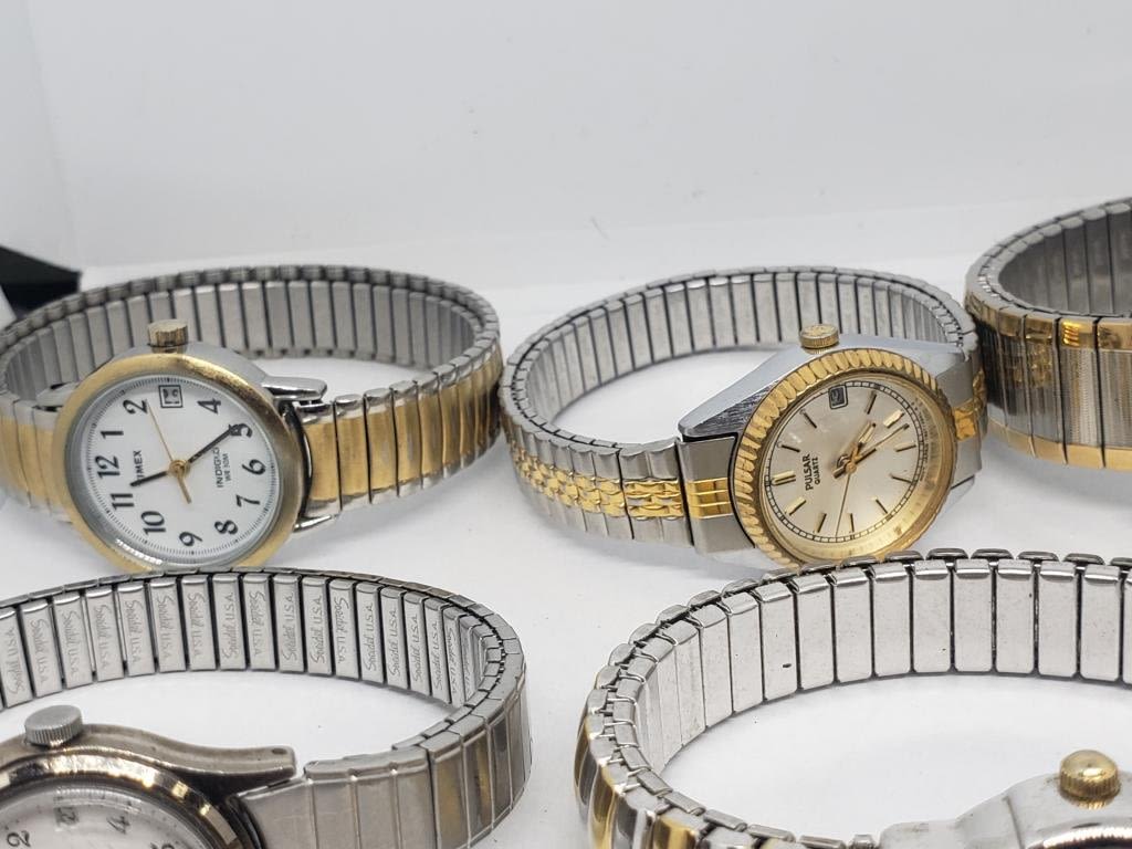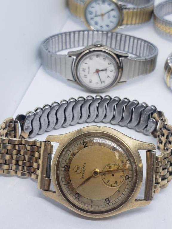 (1)HELBROS #2531848 (1)PRESTIGE WALTHAM WR (1)QUARTZ (1)TIMEX INDIGLO (1)TIMEX (1)HARVE BENARD QUARTZ (2)PULSAR QUARTZ (2)TIMEX INDIGLO WR 30M-ALL WATCHES UNTESTED-PARTS/REPAIR
