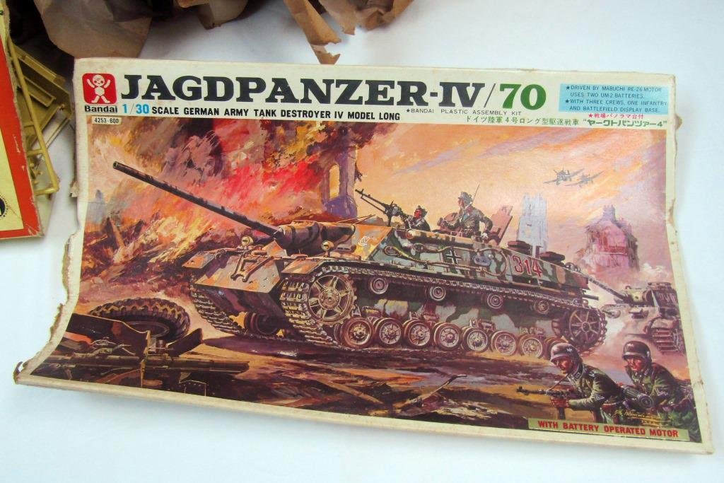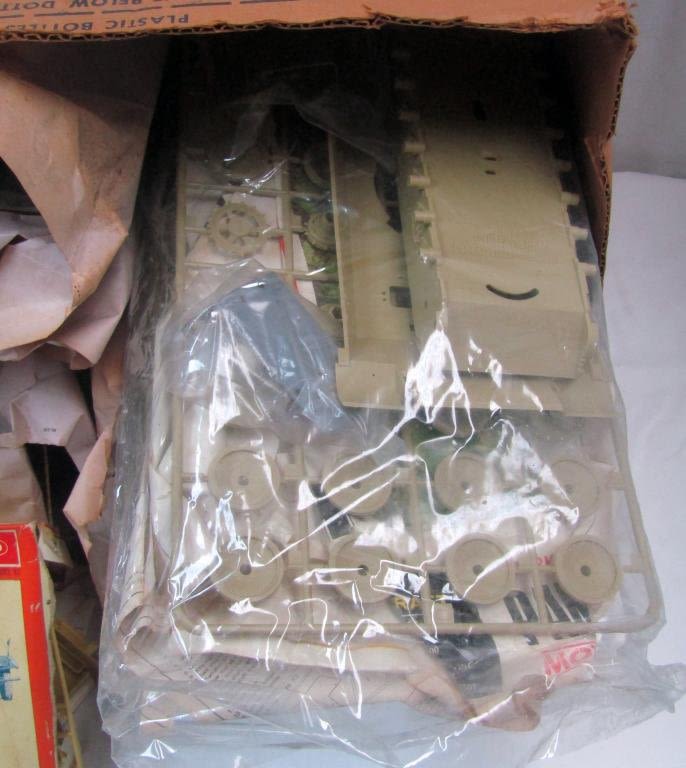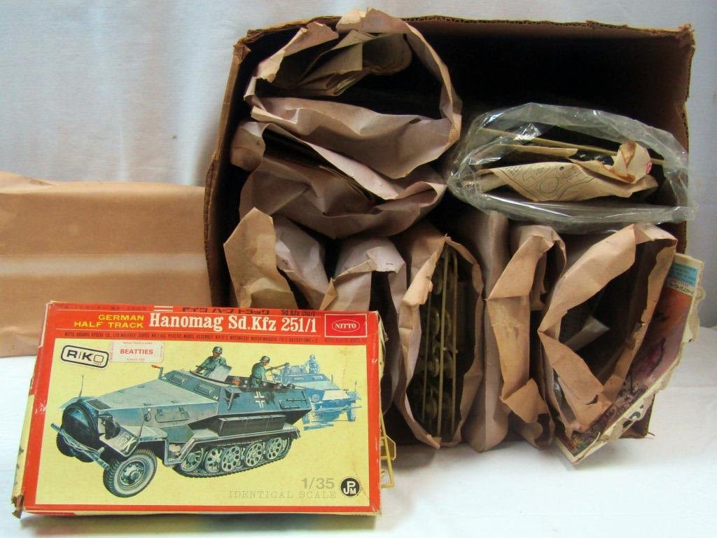 VARIOUS VINTAGE KITS – PLASTIC ASSEMBLY KITS – ARMY TANKS & MILITRAY TERRAIN VEHICLES – UNVERIFIED COMPLETE BUT LOOKS TO BE COMPLETE KITS