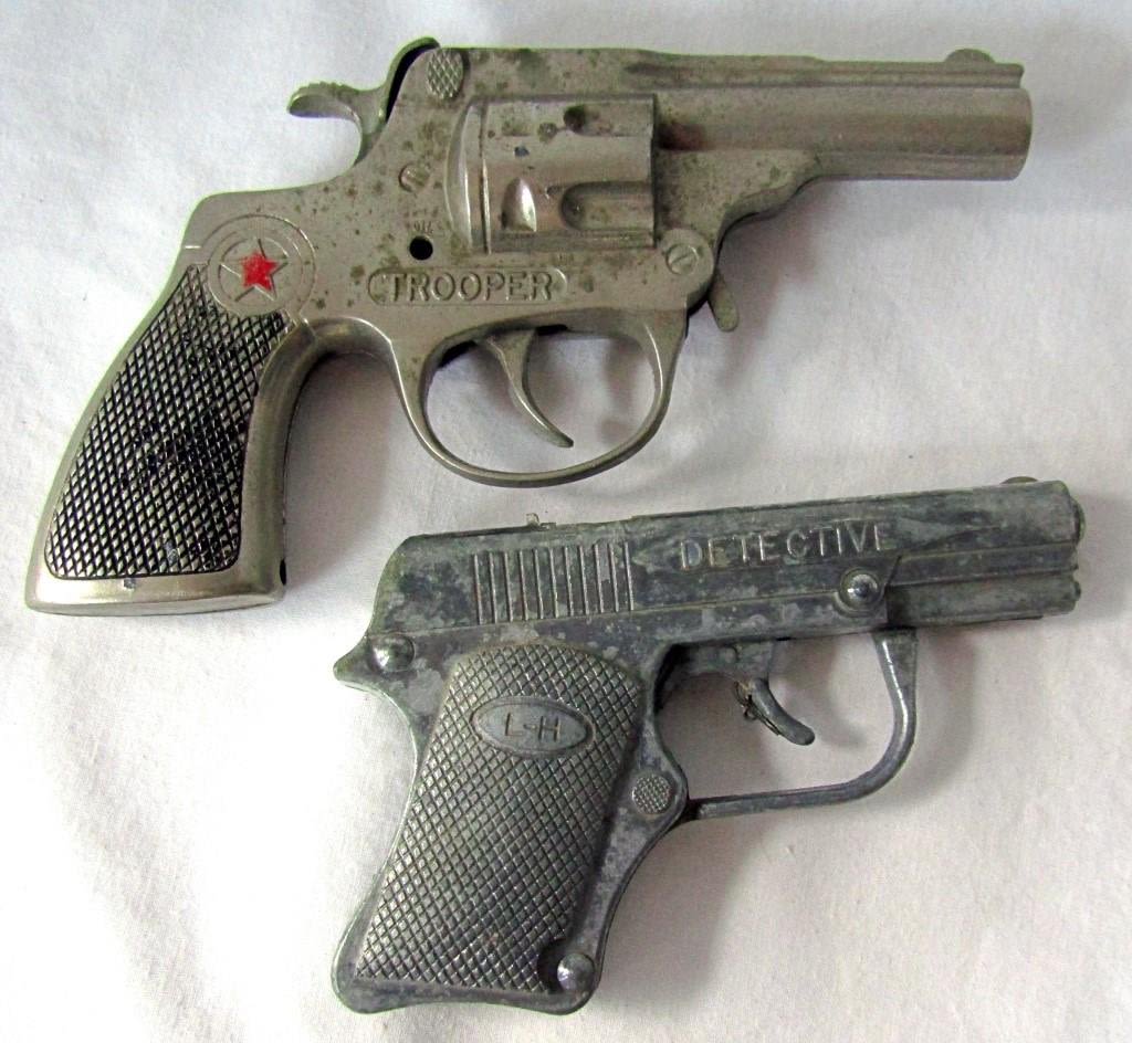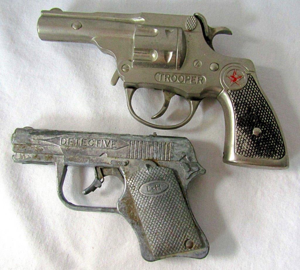 HUBLEY 1950’S TROOPER DIE CAST TOY CAP GUN; LESLIE HENRY L-H TOY DETECTIVE CAP GUN!