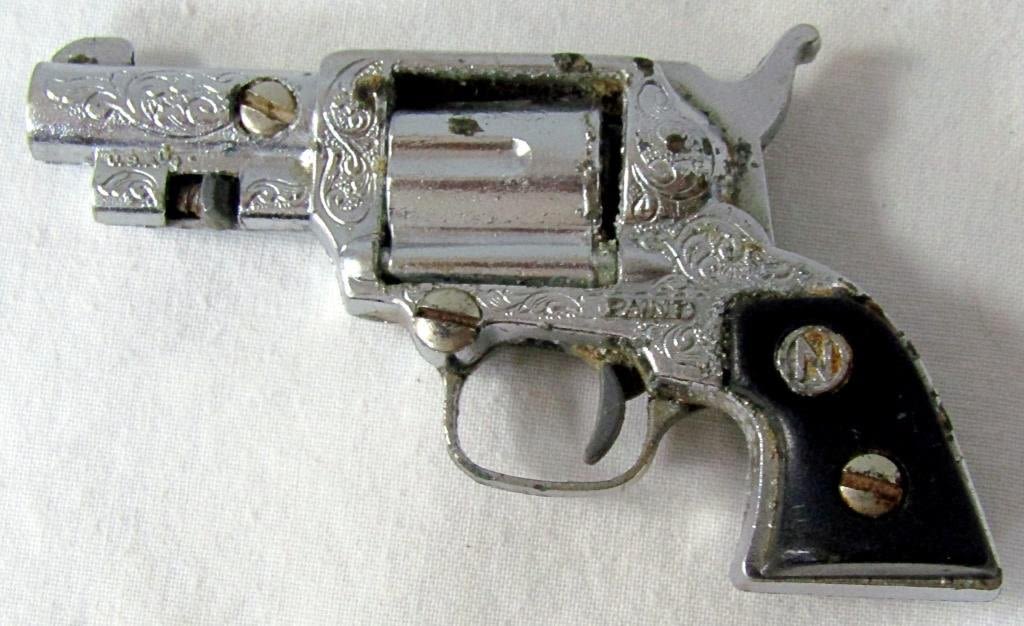 CAP GUN REVOLVER PISTOL TOY! DOES NOT COME WITH THE ORANGE PLUG! TRIGGER IS STUCK.