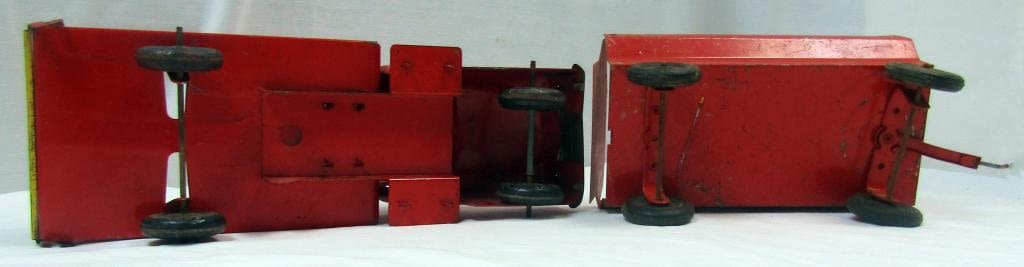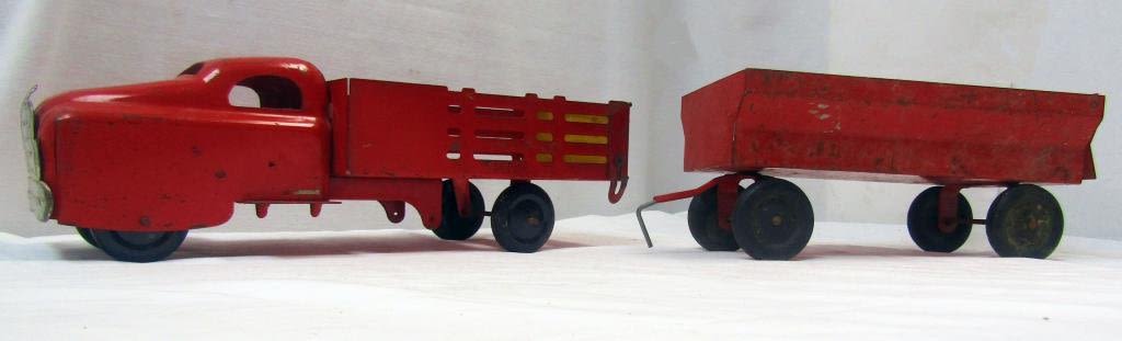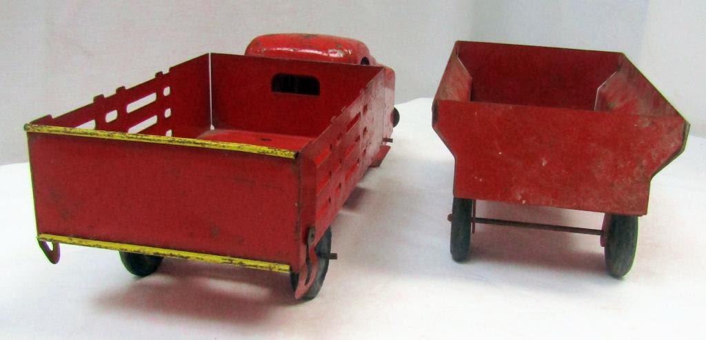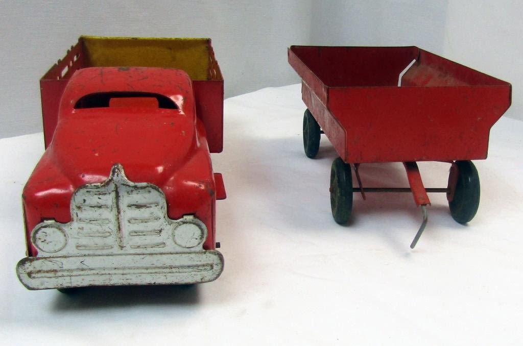 NOT A SET – (2) PRESSED STEEL TOYS – TRUCK 13" LONG – WAGON 8 1/2" LONG