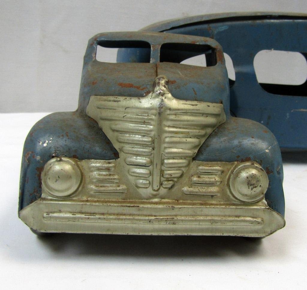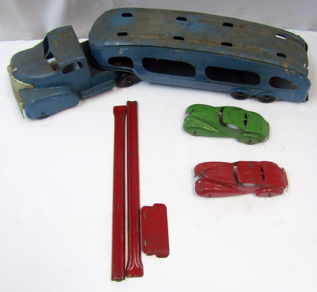 BLUE TRUCK & CARRIER w/METAL WHEELS & (2) CARS & RAMPS / TALE GATE