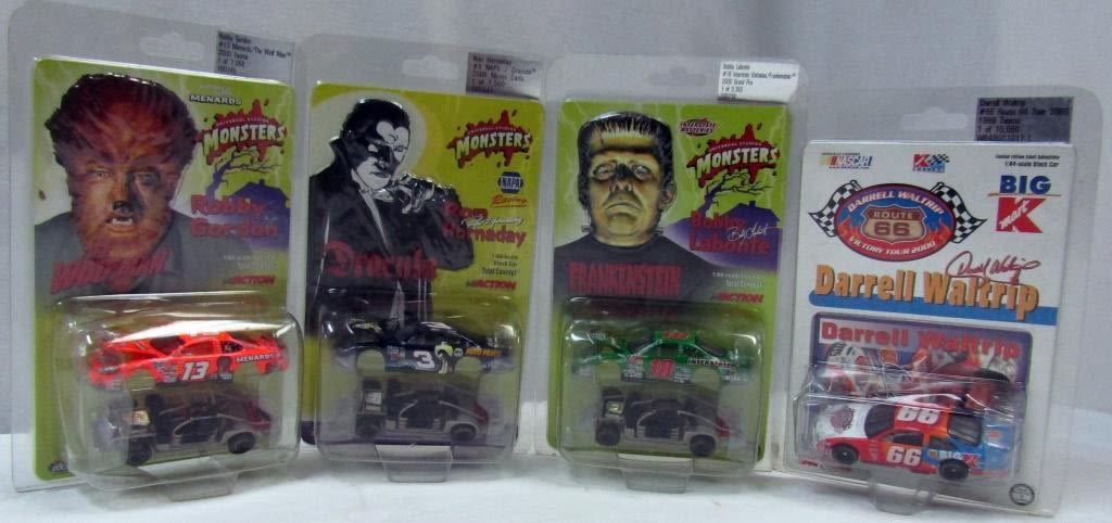 Universal Studios Monsters, Honraday, Labonte, Gordon, Waltrip all sealed in packages.