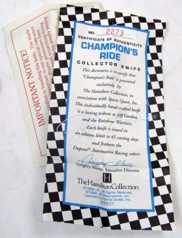 Champions ride, Hamiltion knife in velvet bag and box