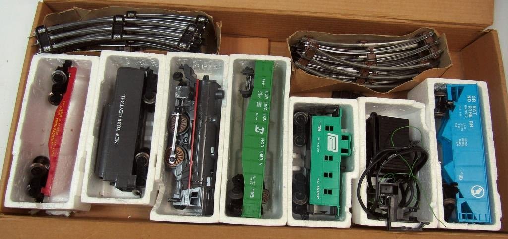 Vintage Steam Freight Train Set only missing 1 straight track IN BOX (BOX IS ROUGH)