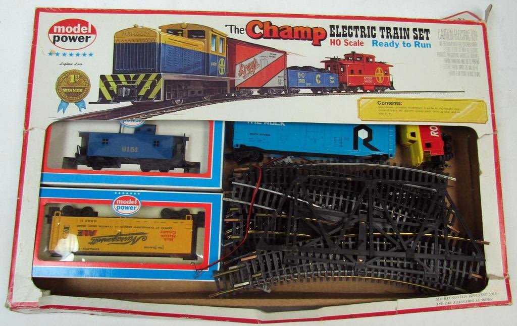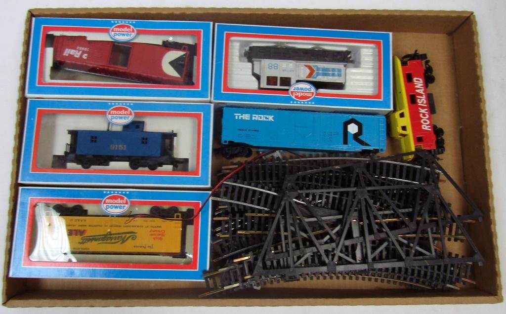 6 train cars, 17 tracks and train bridge in BOX