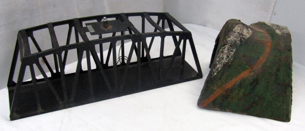 Railroad Mountain tunnel, Black american flyer gilbert train bridge, 17 1/2 inches long