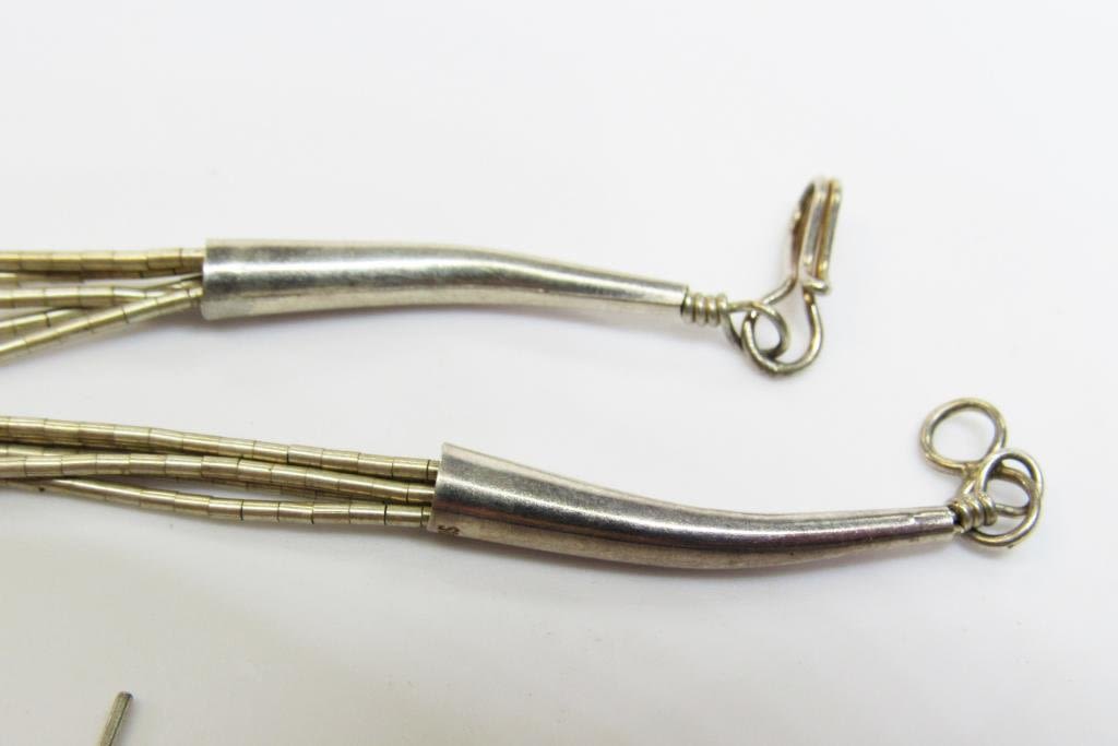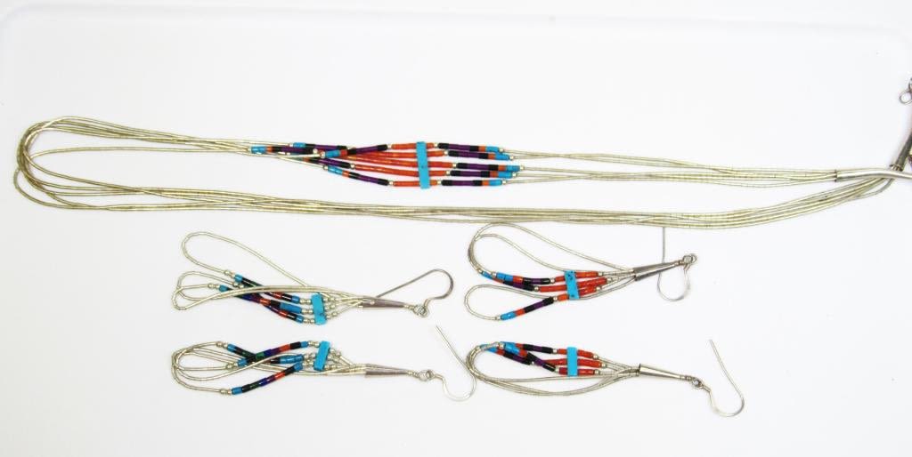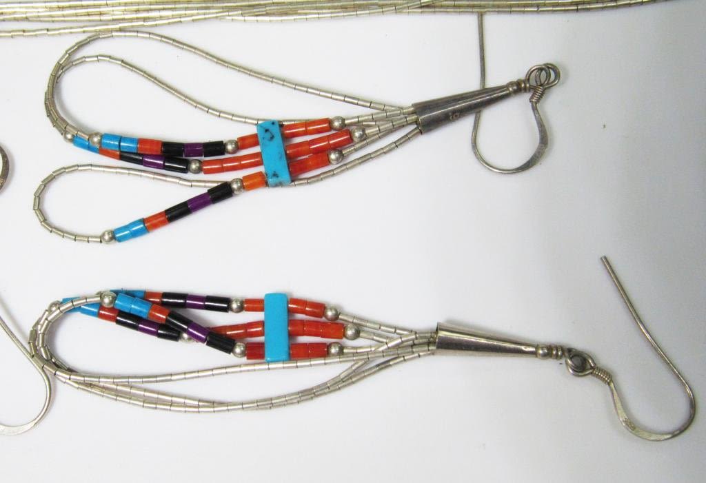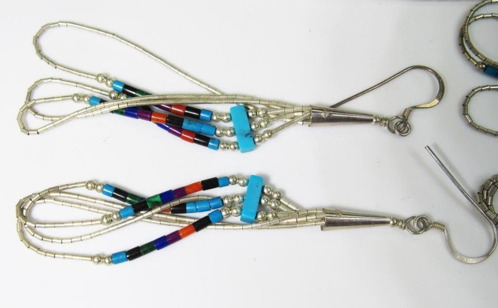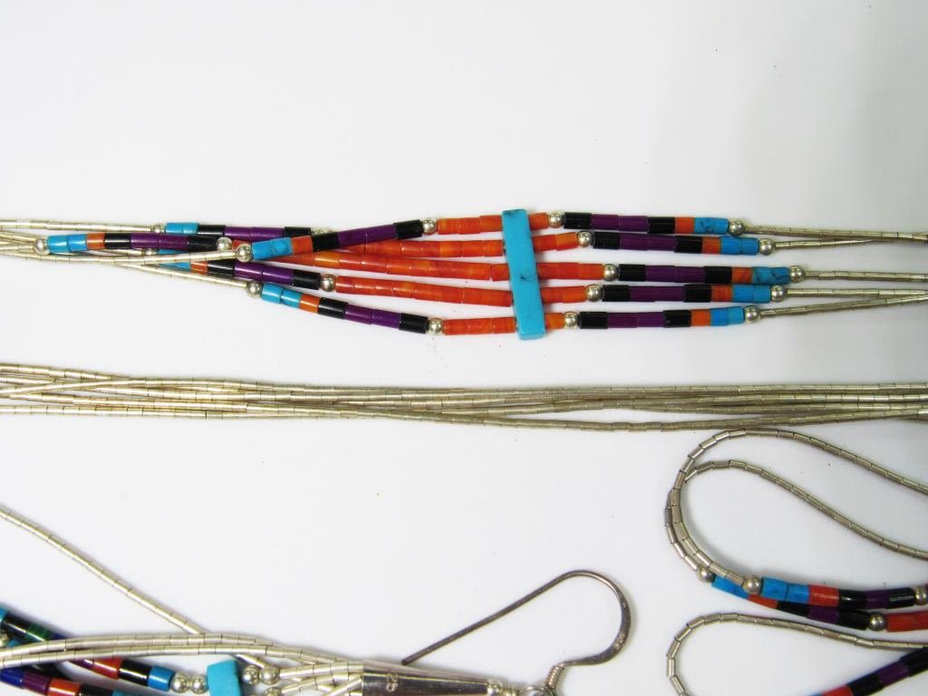 NECKLACE WITH (2)PAIRS OF MATCHING PIERCED DANGLY EARRINGS-MULTI COLORED BEAD ACCENTS-TOTAL 14.3 DWT