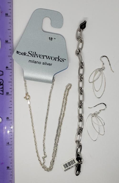 NECKLACE over LEAD FREE METALS 18" LONG / PENELOPE BRACELET 7" LONG / DANGLE EARRINGS ( 8.7 DWT)