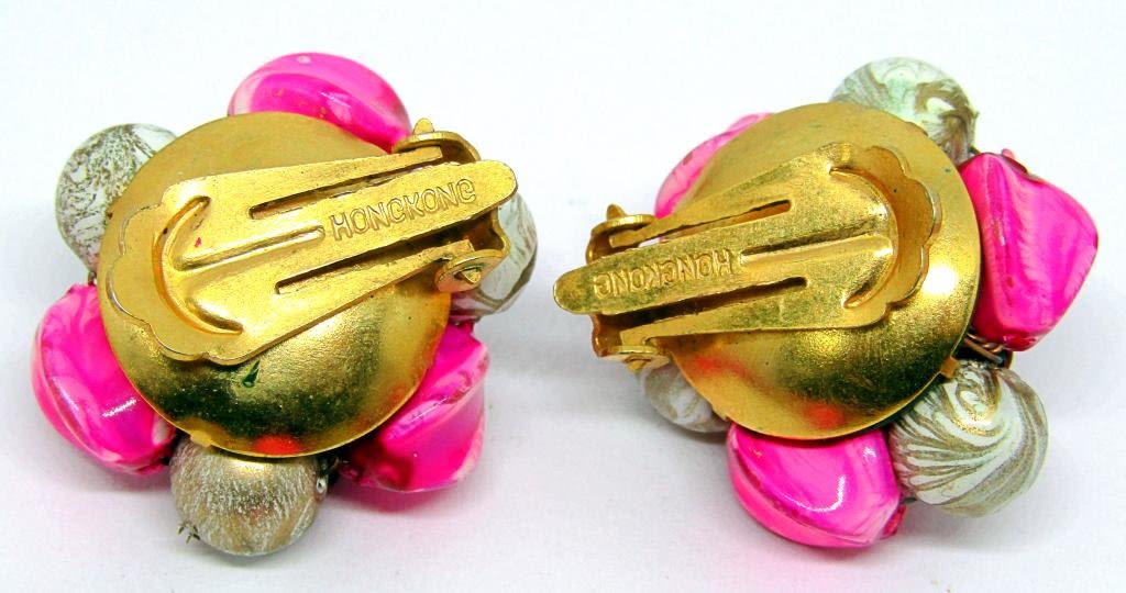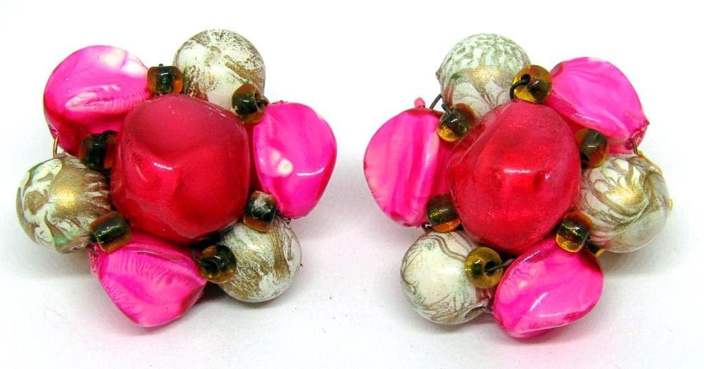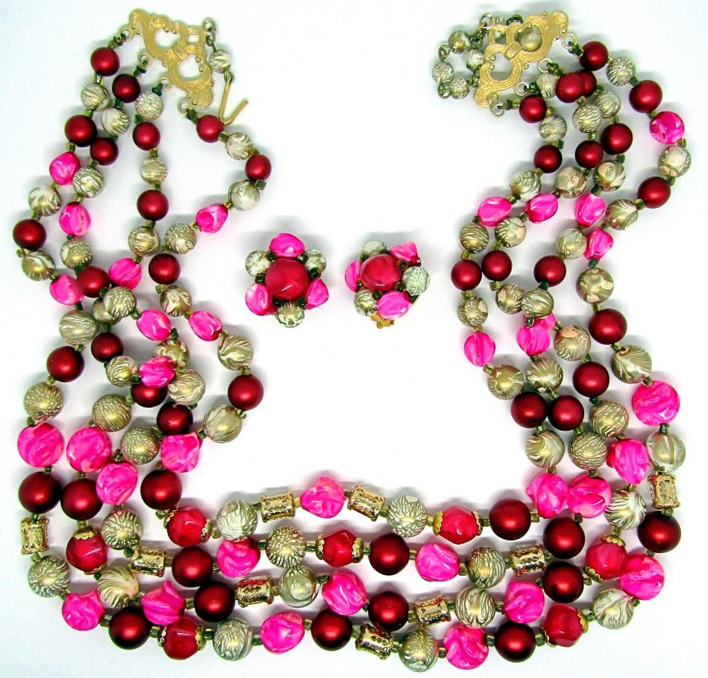 WITH MATCHING PAIR OF CLIP ON EARRINGS-MAROON-PINK