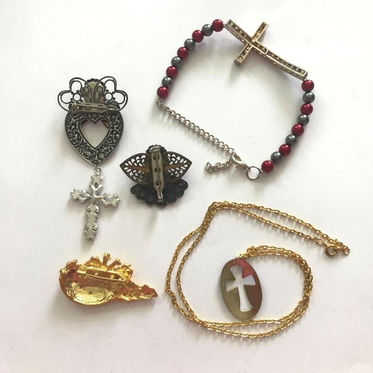 2 ANGEL BROOCHES, 1 NOAH’S ARK BROOCH GOLD TONE, 1 CROSS BRACELET, 1 CROSS PENDANT, 1 CROSS NECKLACE
