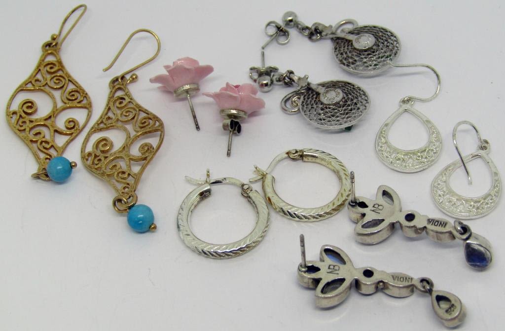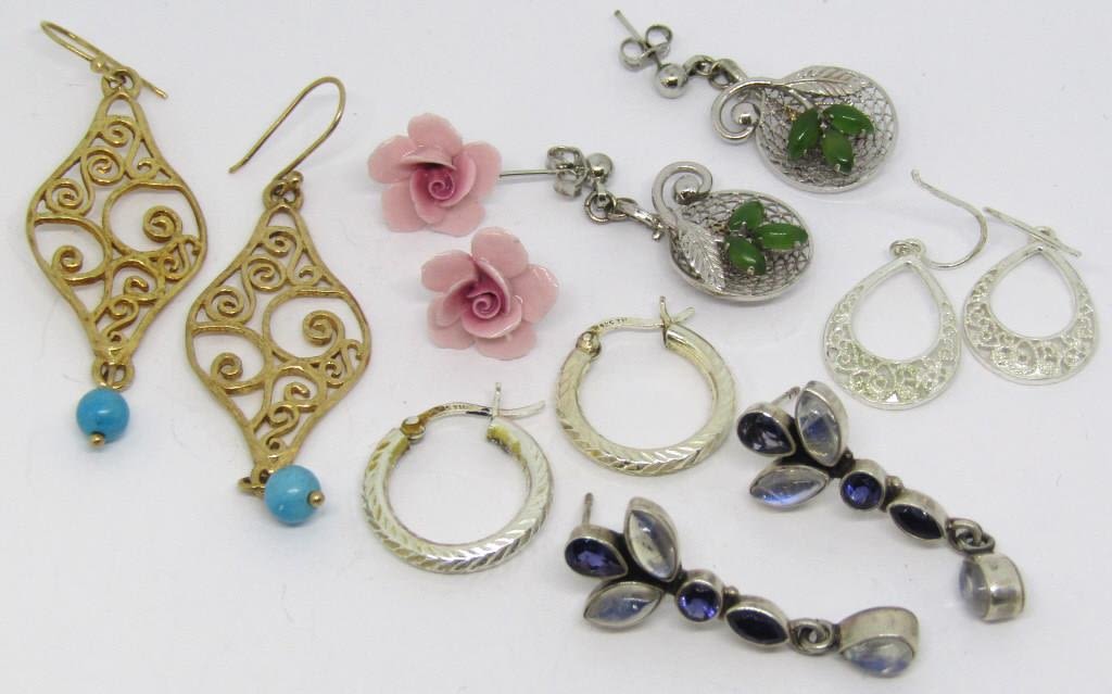 GOLD SET MARKED ISRAEL, PURPLE SET MARKED INDIA, PORCELAN ROSE SET & MORE – 14.9 DWT
