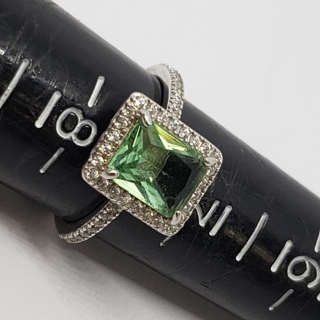 (2)WITH CLEAR STONES (1)GREEN CENTER STONES-VARIOUS SIZES 7.5-8.5-TOTAL 9.1 DWT