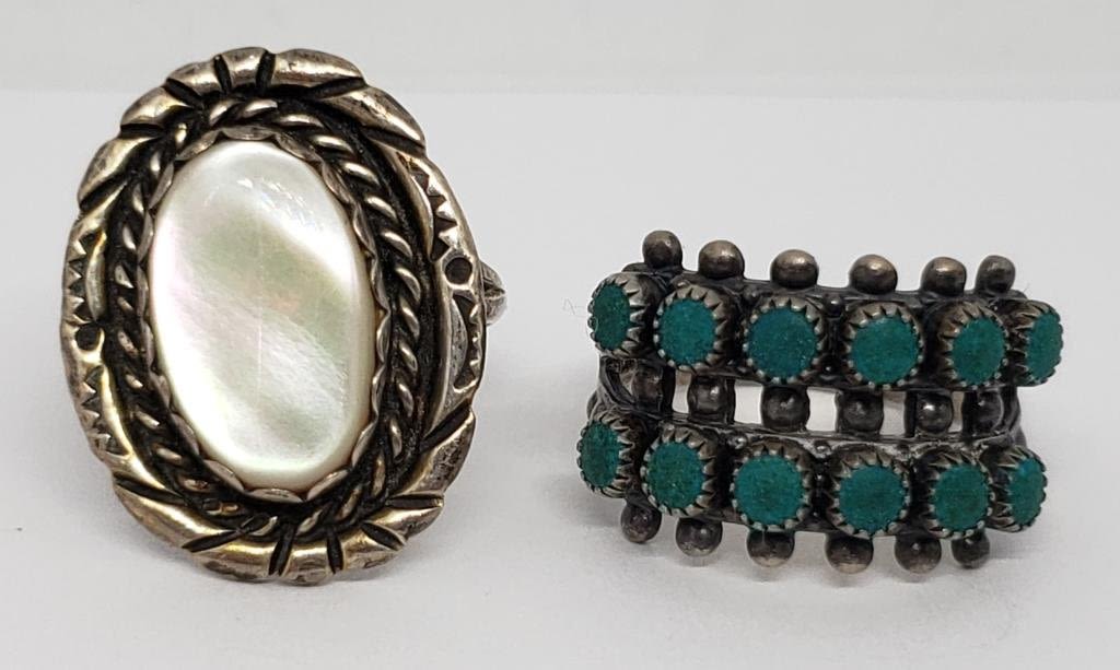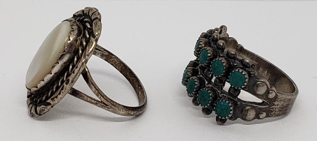 STONES & (1)WITH MOTHER OF PEARL CENTER-RING SIZES 6 & 7-TOTAL 6.1 DWT