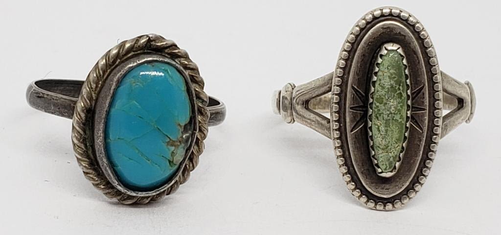 & TURQUOISE CENTER STONES-BOTH RINGS SIZE 8-TOTAL 3.5 DWT