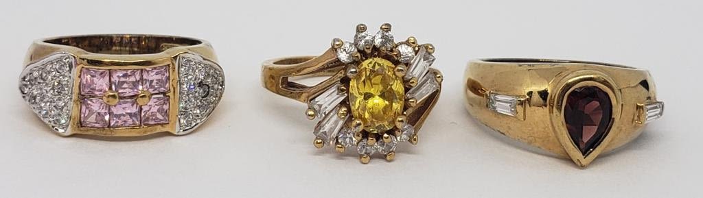 ALL WITH DIFFERENT COLORED STONES! RING SIZES 7.5-8.5-TOTAL 10.6 DWT