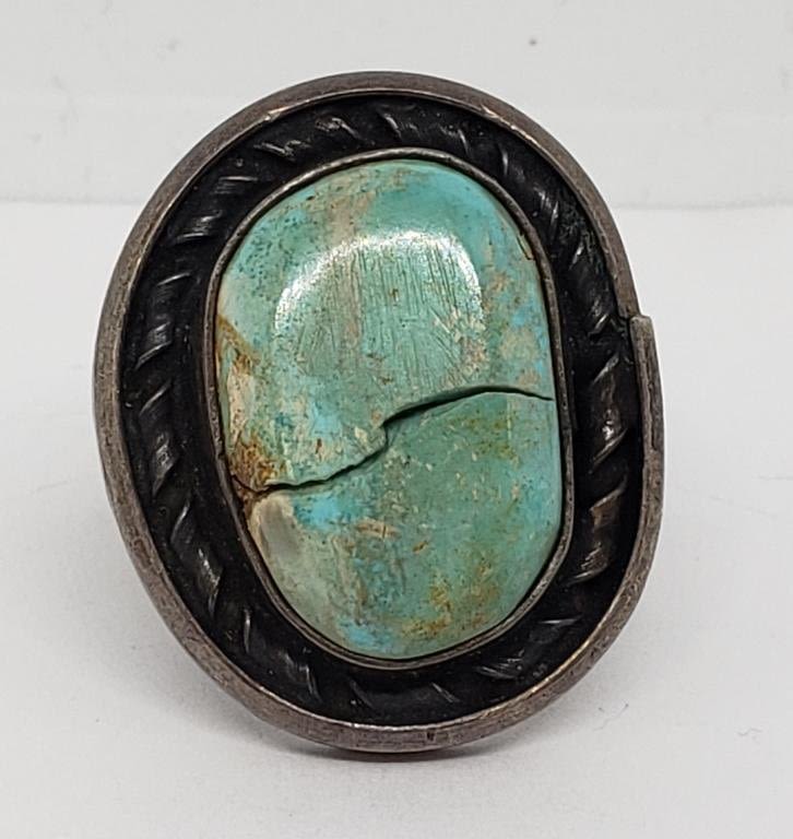 GREEN CENTER STONE (CRACKED)RING SIZE 9-TOTAL 9 DWT