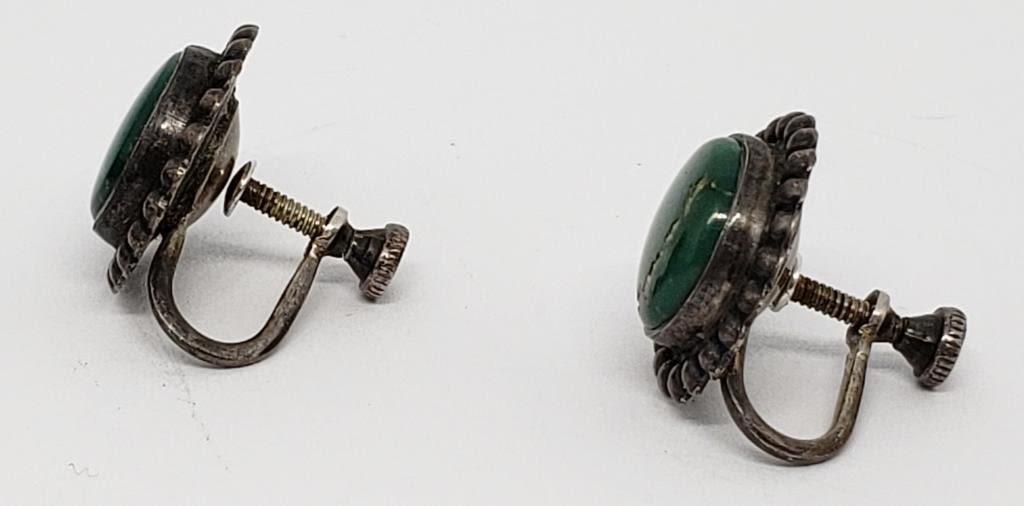 EARRINGS WITH GREEN CENTER STONE-TOTAL 3.8 DWT