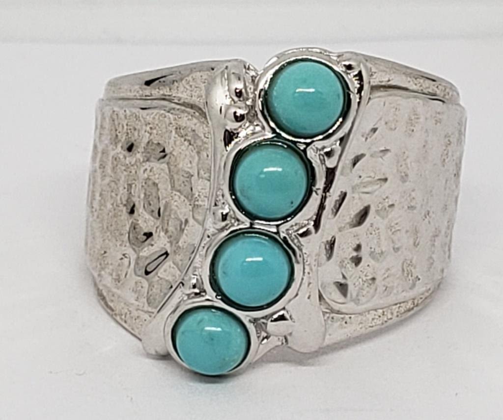 TURQUOISE BEADED STONES-RING SIZE 8-TOTAL 6.5 DWT