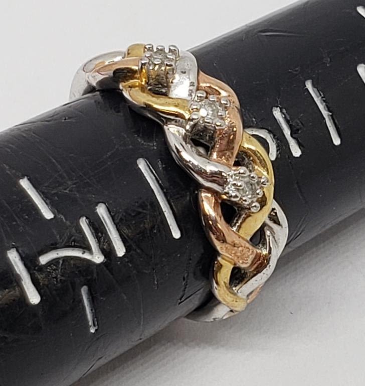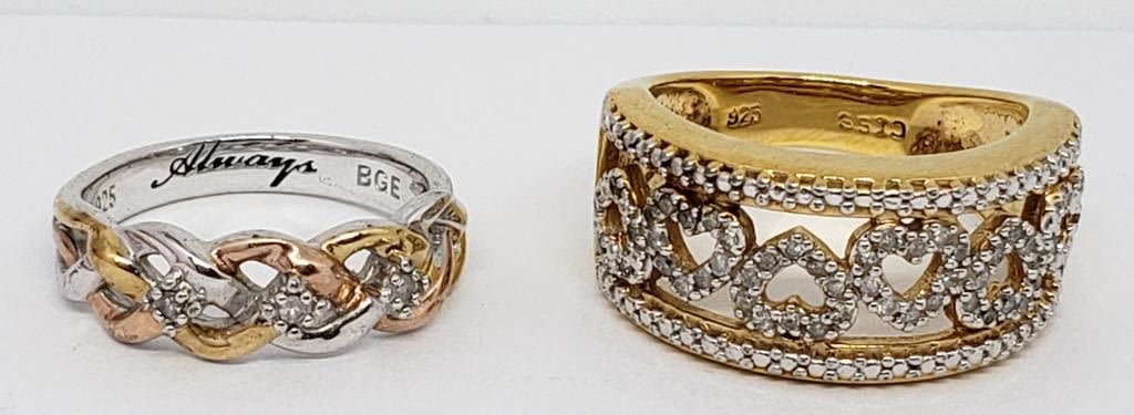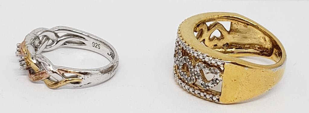 STONES (1)HEART DESIGN WITH ROSE GOLD ACCENTS-RING SIZES 6.5 & 8-TOTAL 6.7 DWT