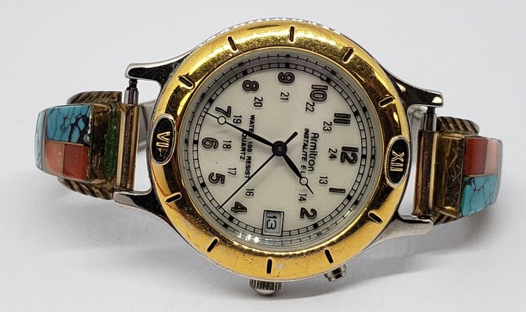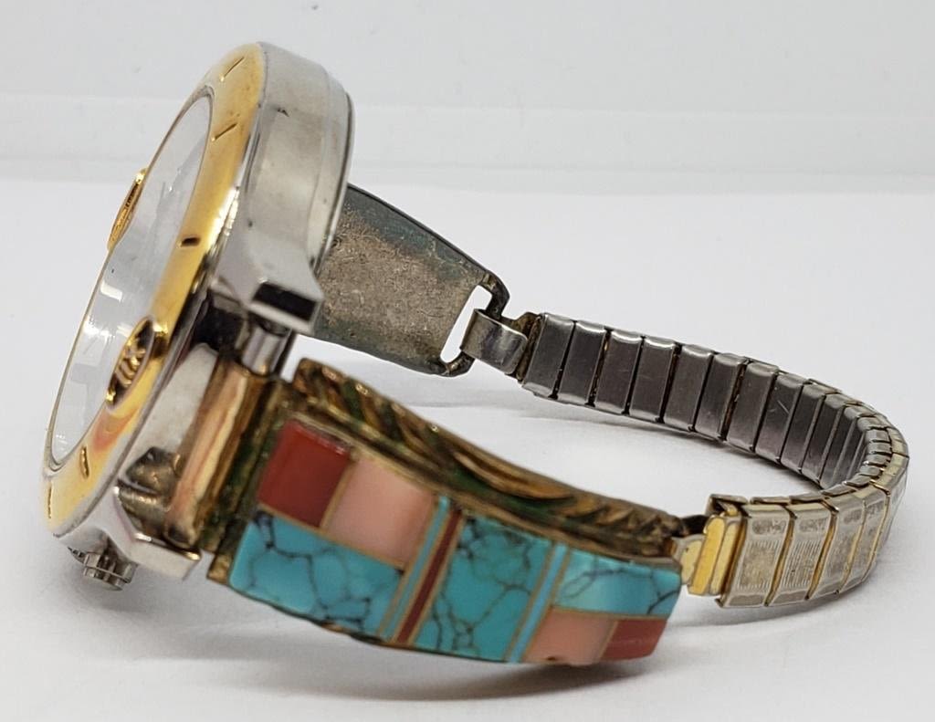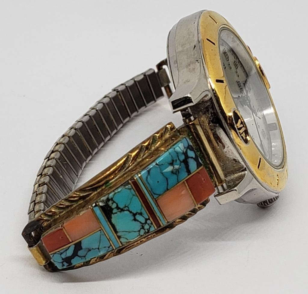 WITH TURQUOISE AND RED CORAL INLAY DESIGN-PINK ACCENTS-TOTAL 24.1 DWT