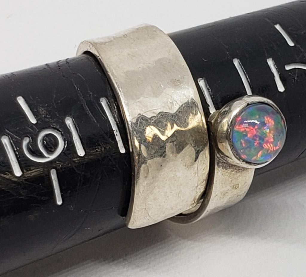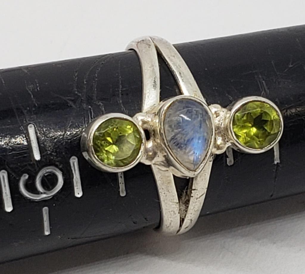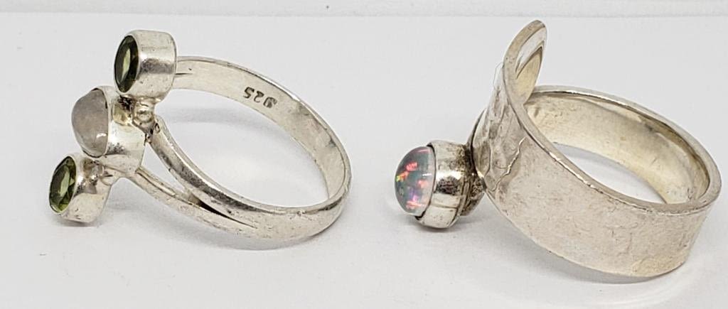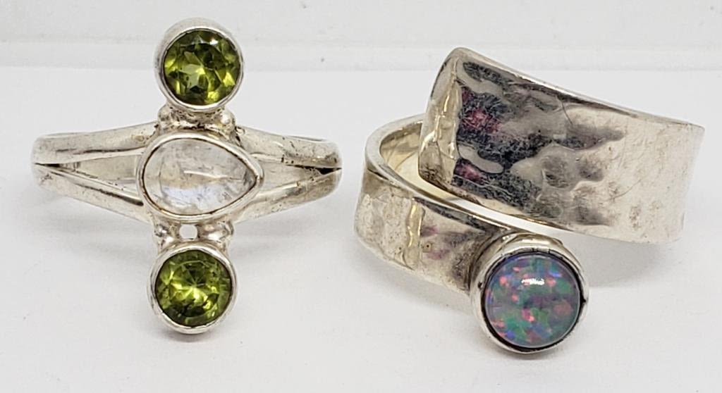 METALIC/GLITTERY CENTER STONE & (1)WITH LIGHT GREEN AND BLUE STONE ACCENTS-RING SIZES 8 & 8.5-TOTAL 6.7 DWT
