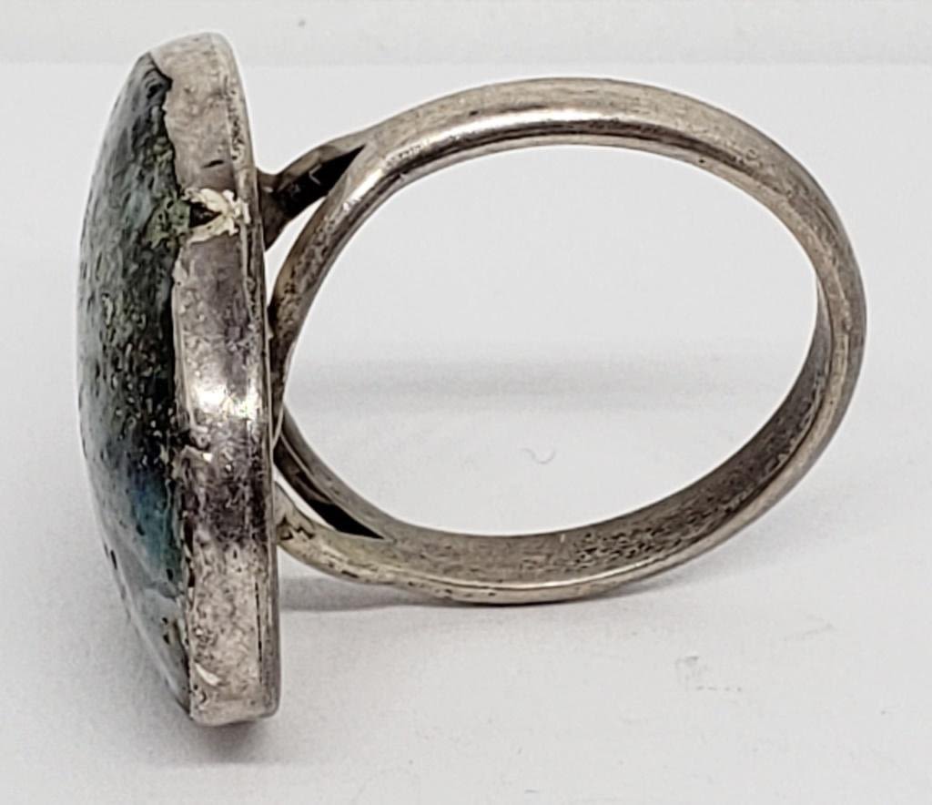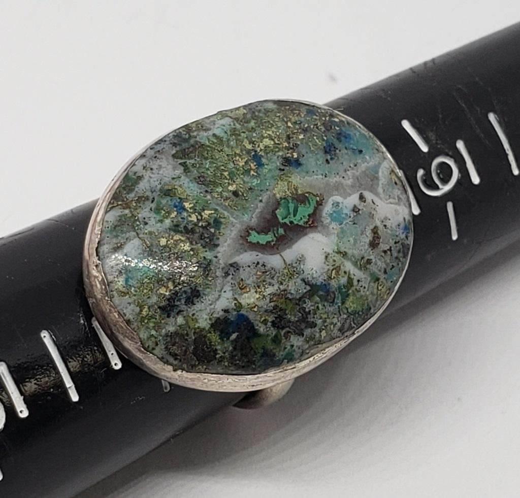 POLISHED NATURAL CENTER STONE WITH GREEN ACCENTS-TOTAL 7 DWT