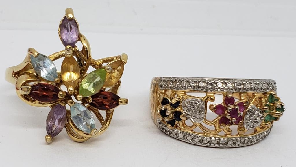COLORED STONES-RING SIZES 8.5 & 9-TOTAL 6.9 DWT
