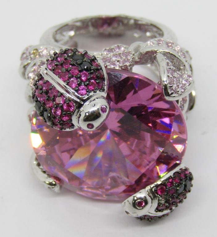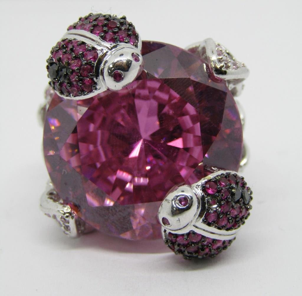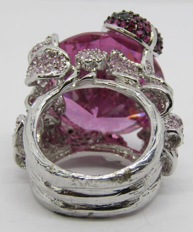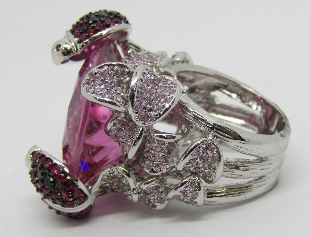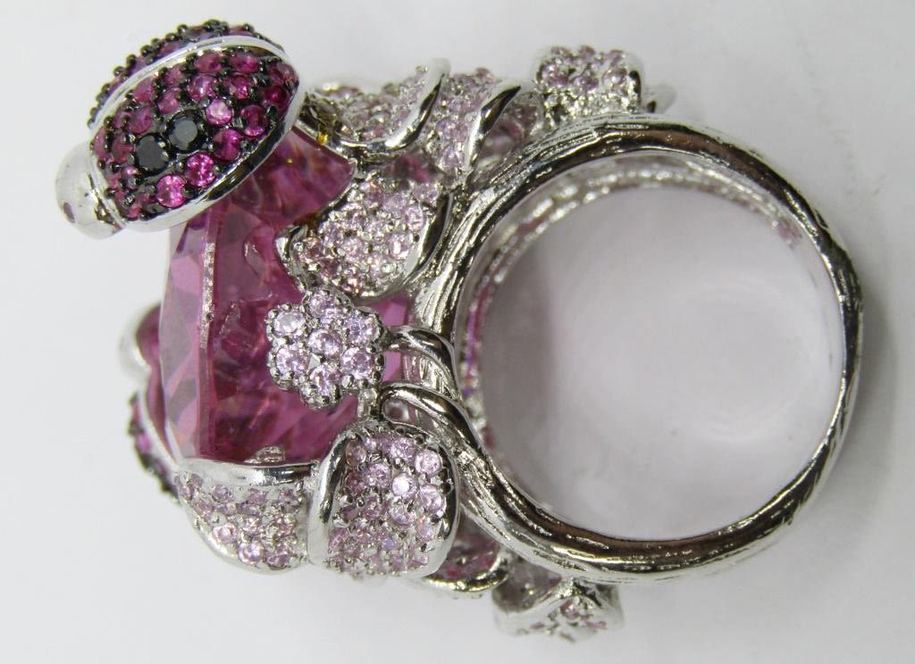 WITH LARGE PINK CENTER STONE-HEAVY!! RING SIZE 9-TOTAL 26.3 DWT