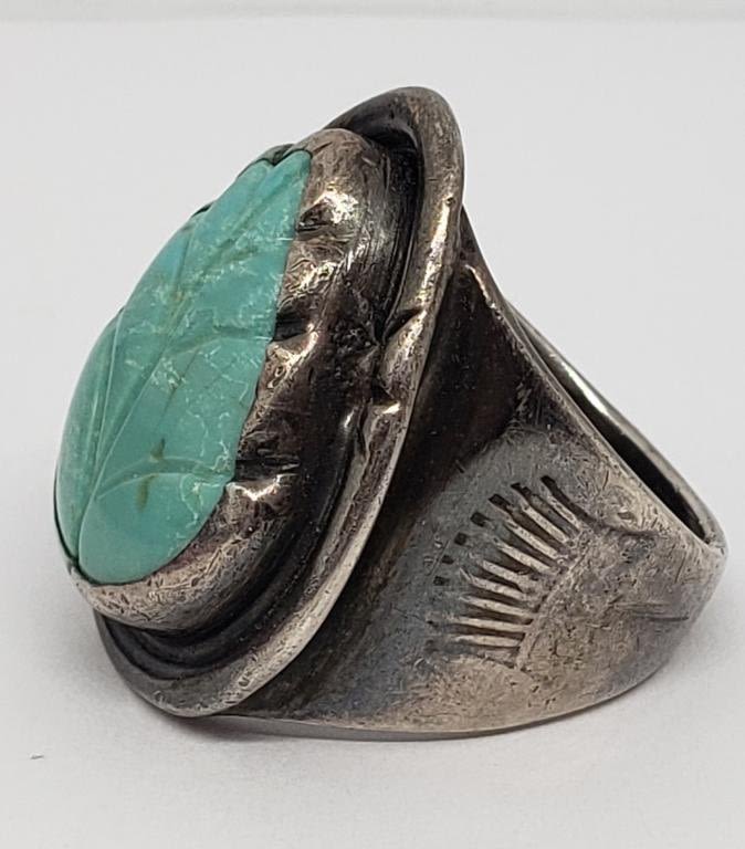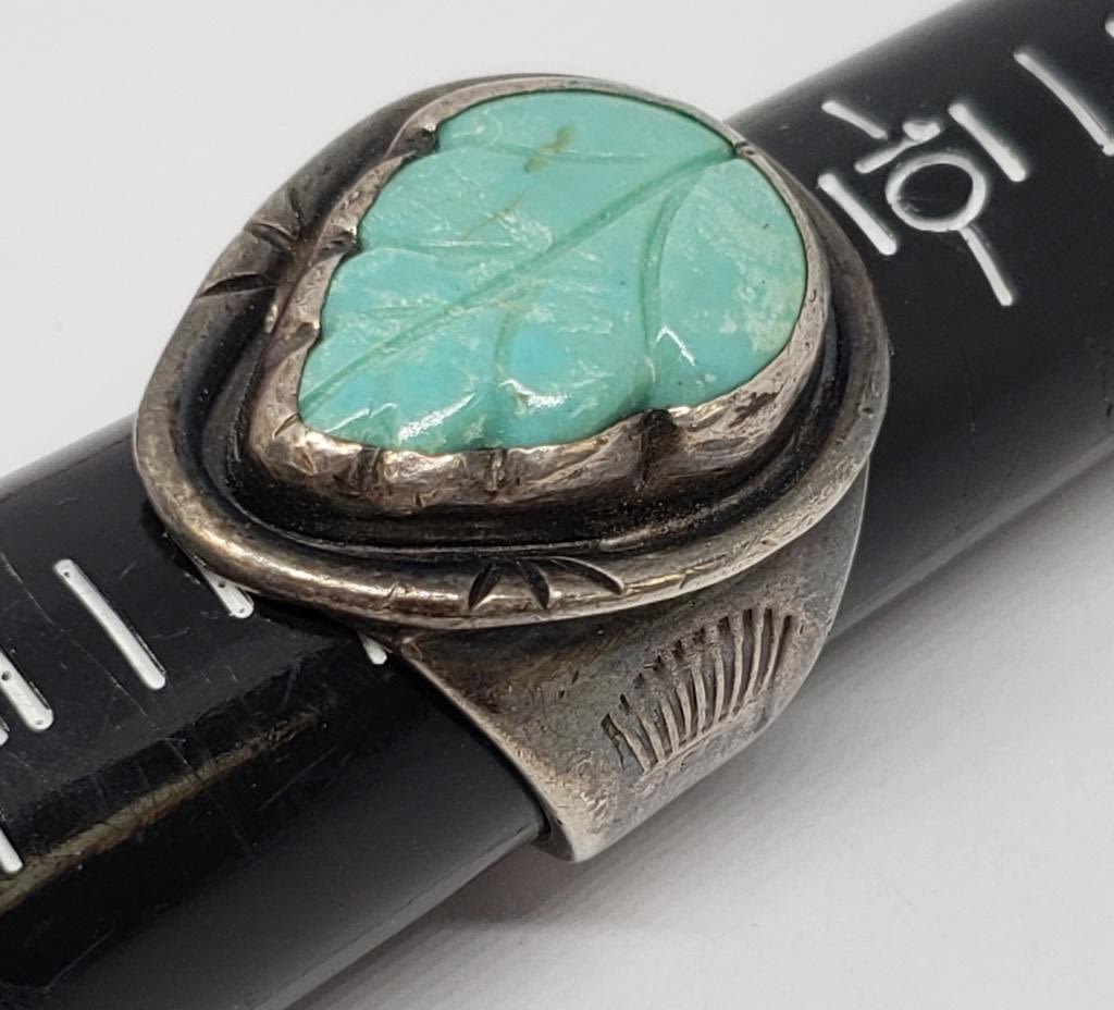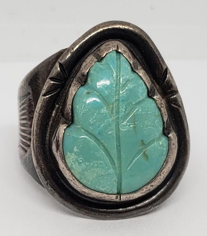 TURQUOISE LEAF DESIGN-RING SIZE 11-TOTAL 9.1 DWT