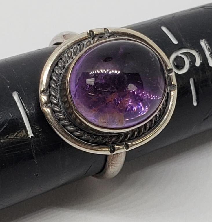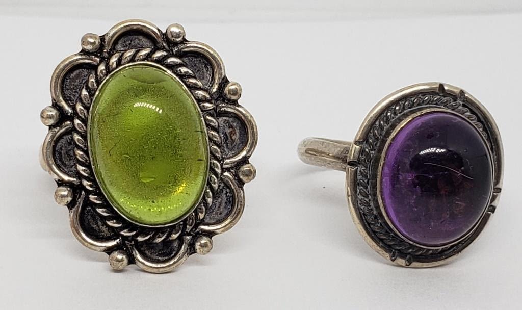 PURPLE STONE (1)WITH TRANSLUCENT GREEN CENTER STONE-VARIOUS SIZES 7 & 9-TOTAL 6.7 DWT
