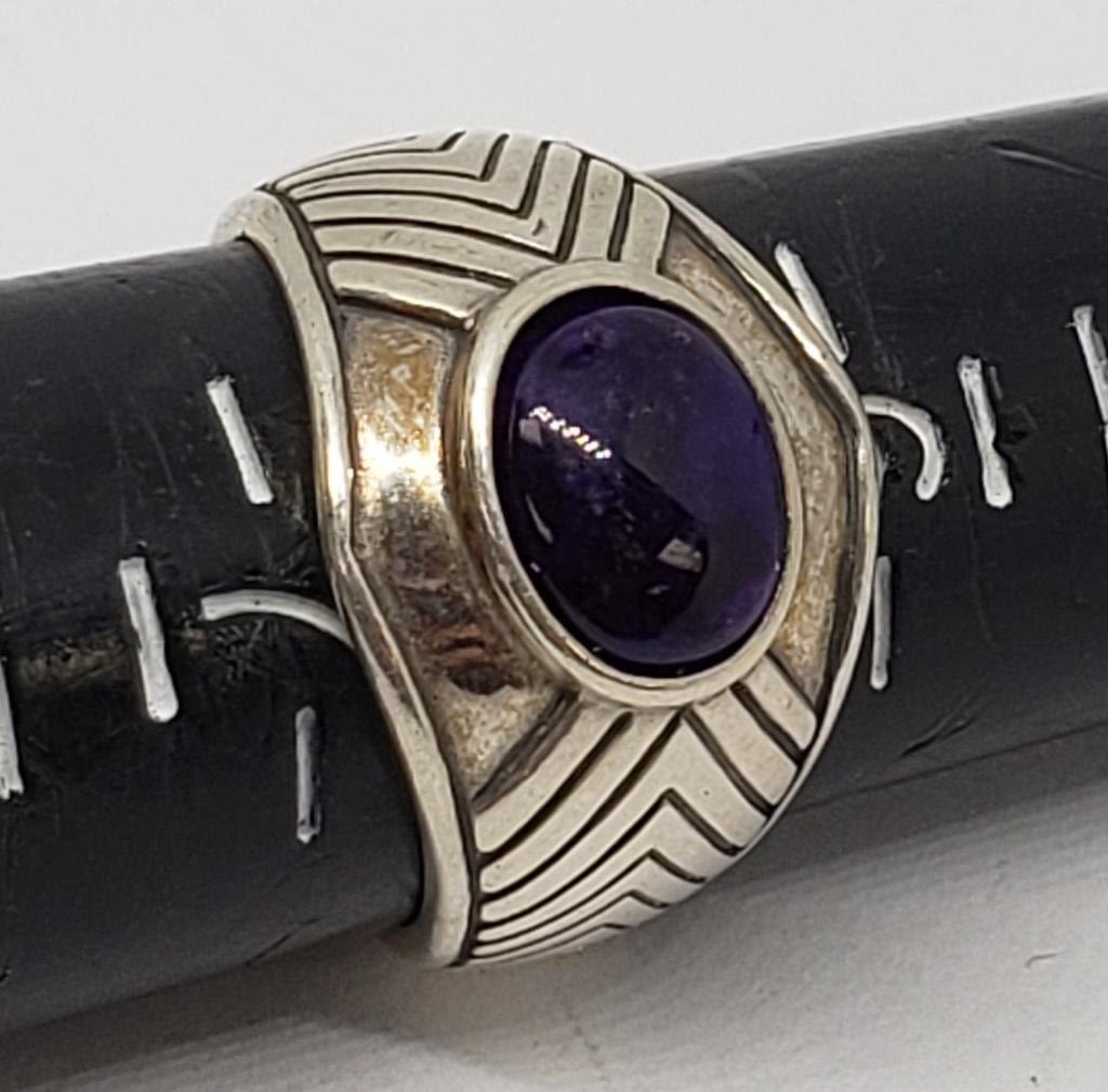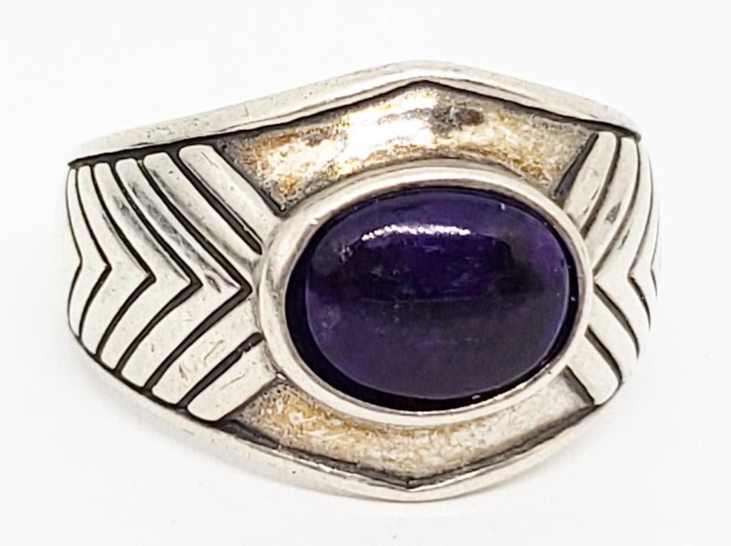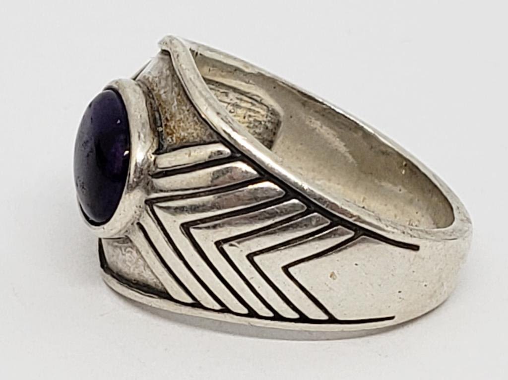 WITH PURPLE CENTER STONE WITH ENGRAVED BAND-TOTAL 7.2 DWT-RING SIZE 6.5