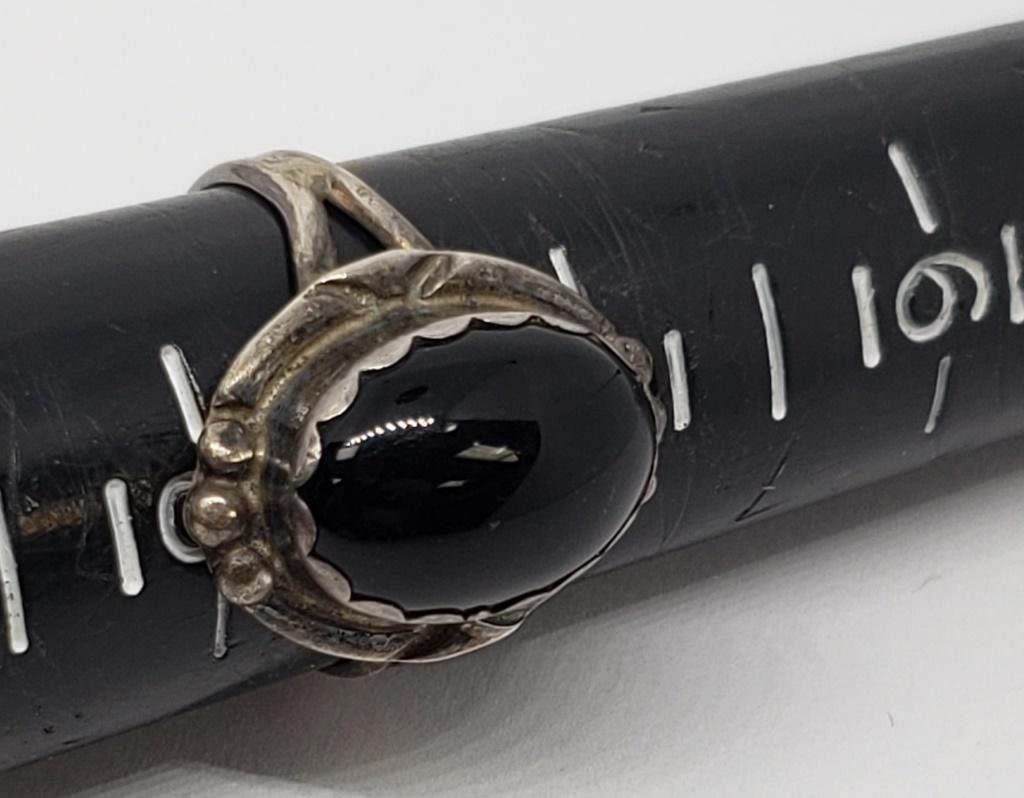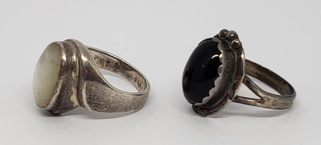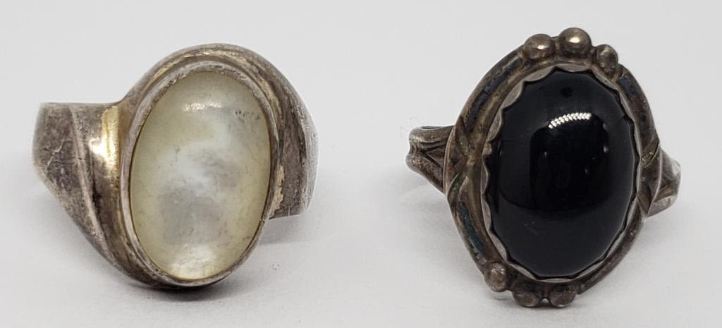 BLACK CENTER STONE (1)WITH MOTHER OF PEARL CENTER-RING SIZES 7 & 8-TOTAL 5.9 DWT