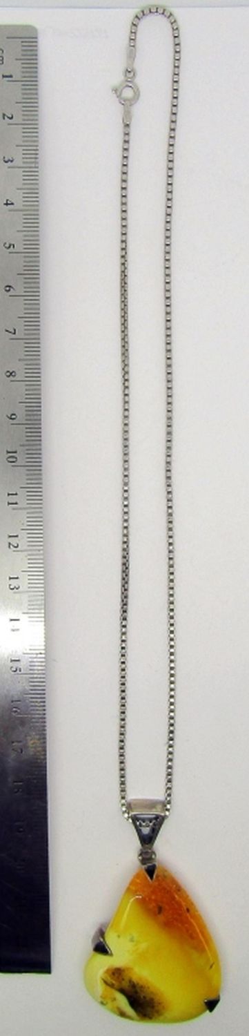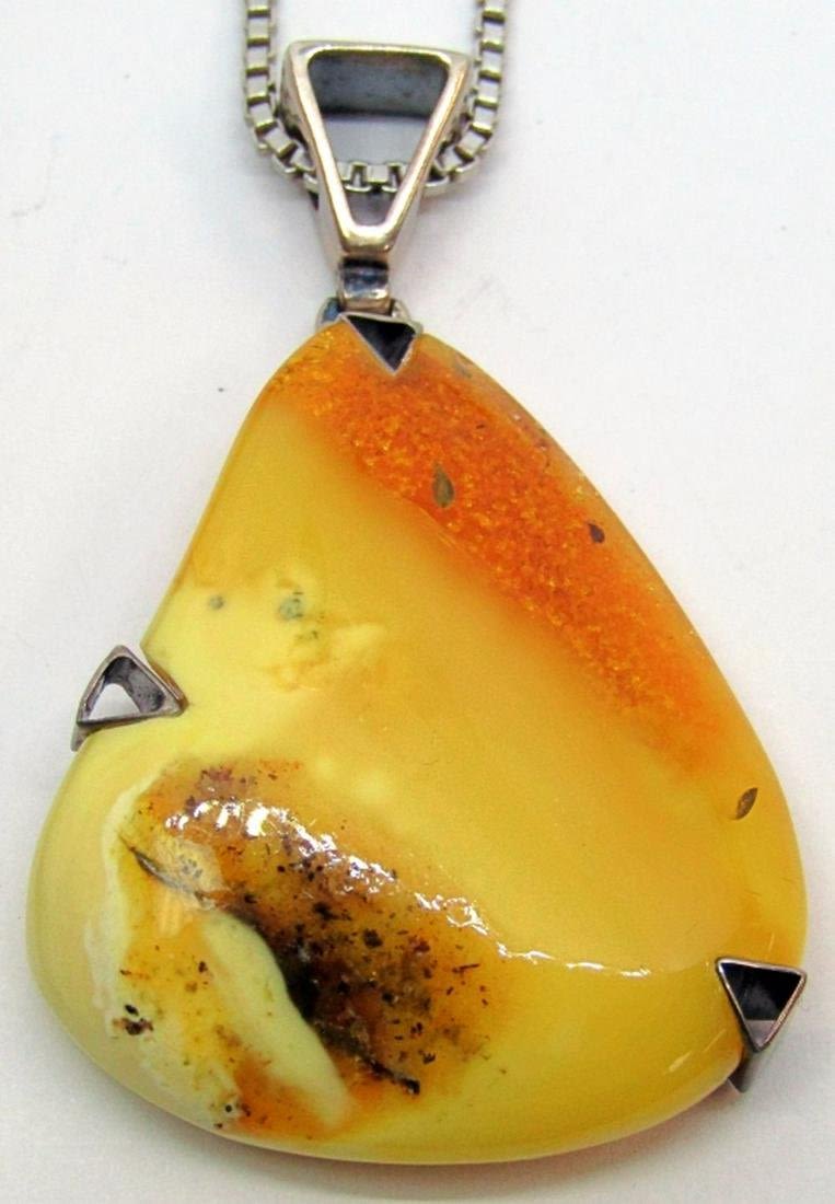 POLISHED NATURAL STONE-COMES WITH 16 INCH BOX CHAIN STYLE NECKLACE/CHAIN-TOTAL 17 DWT