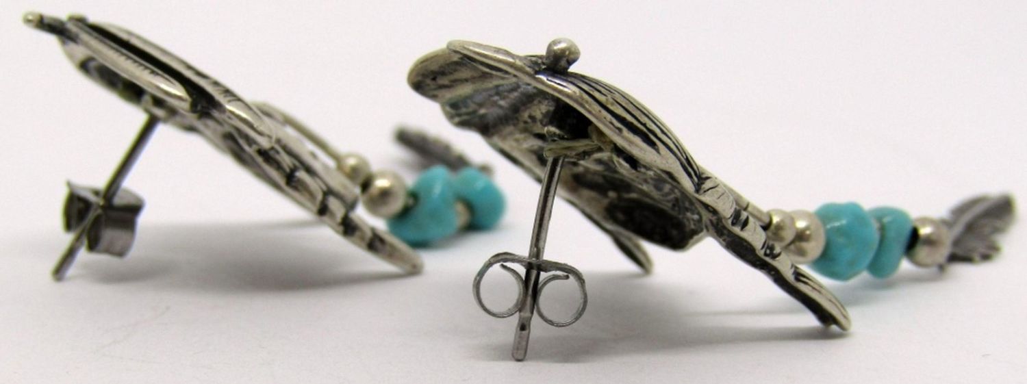 LIQUID STERLING WITH FEATHER DANGLY CHARM-TURQUOISE STONE ACCENTS-TOTAL 8.6 DWT
