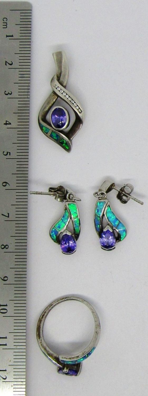 WITH MATCHING PAIR OF DANGLY EARRINGS AND SIZE 7 RING-TOTAL 13.2 DWT