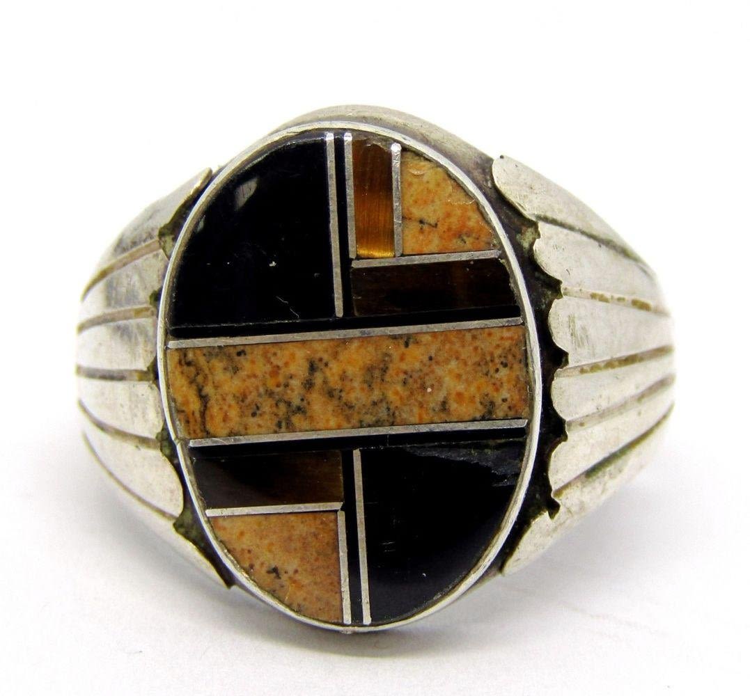 AND TIGER EYE INLAY DESIGN-RING SIZE 11.5-TOTAL 14.7 DWT