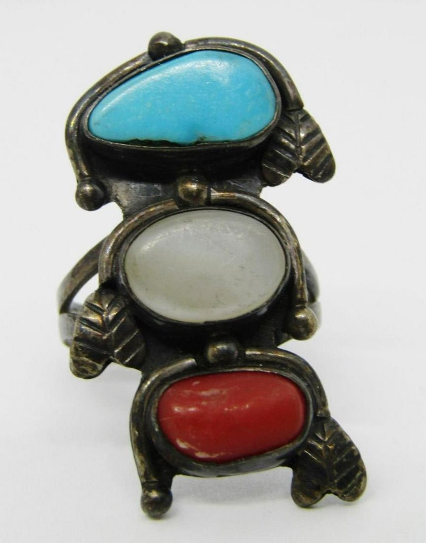OF PEARL AND TURQUOISE STONES-RING SIZE 7-TOTAL 6.3 DWT